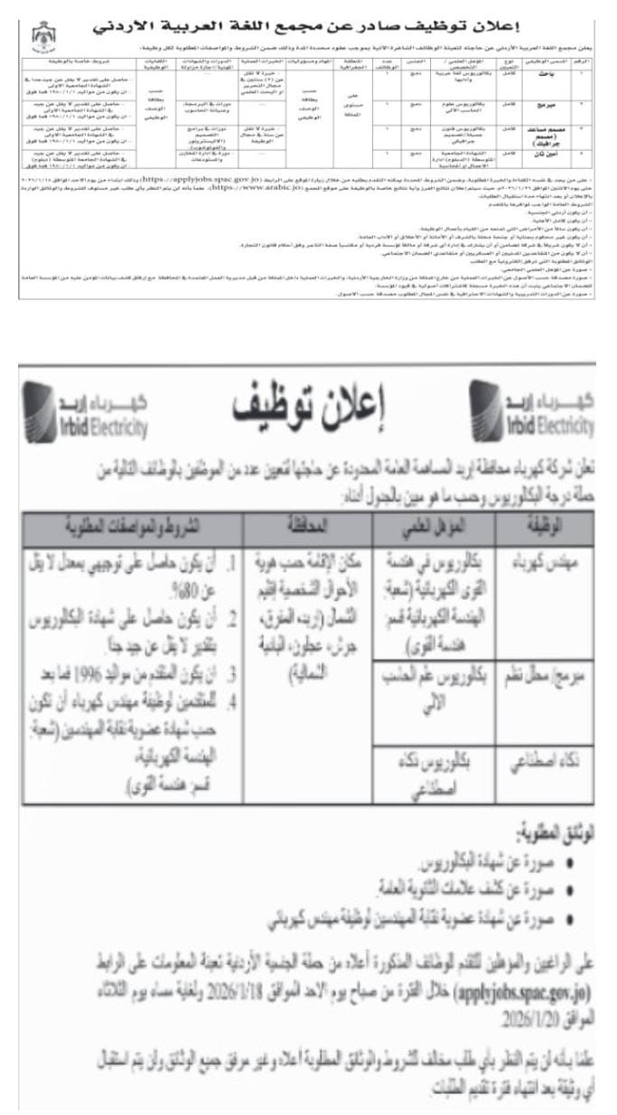 اعلنت دوائر حكومية اليوم الاحد عن حاجتها لتعبئة وظائف شاغرة