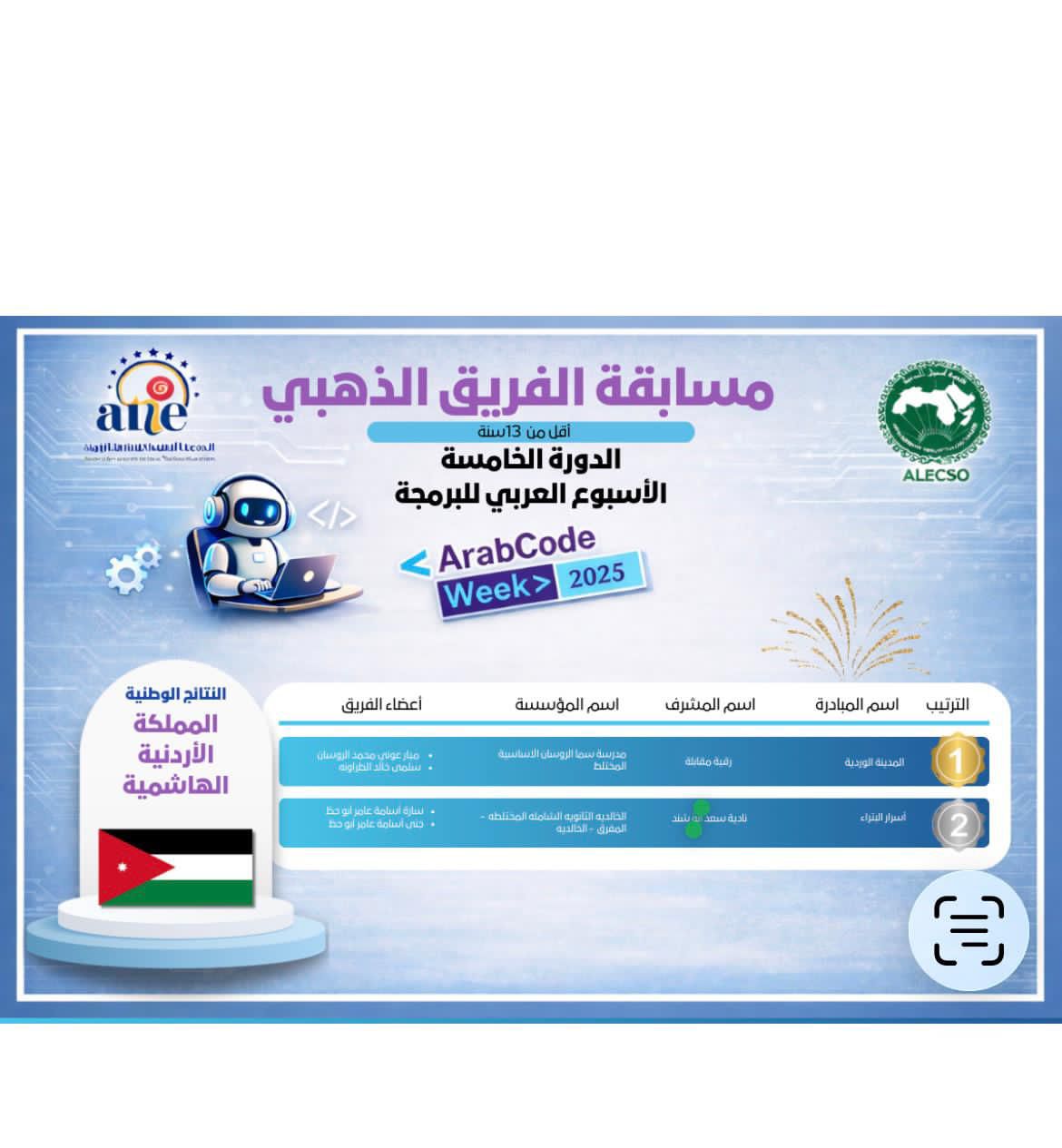 حرصنا الدائم على تطوير مهارات طلابنا في مجالات الابتكار الرقمي والبرمجة الحديثة."
