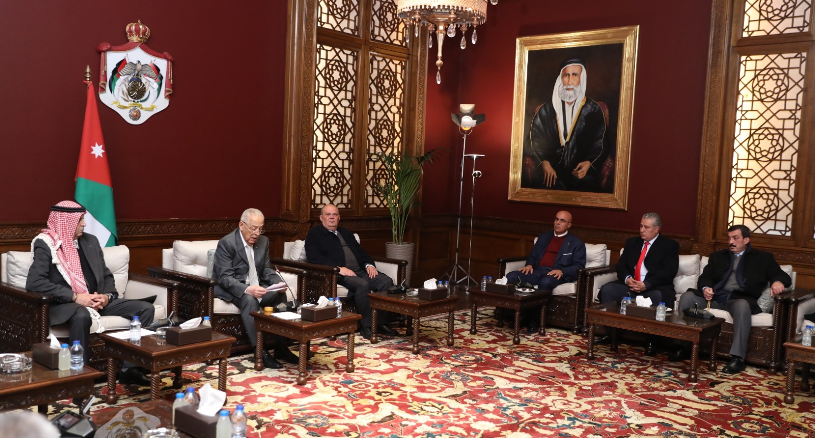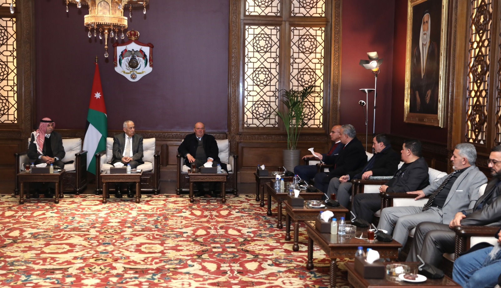 *عمان –  التقى رئيس الديوان الملكي الهاشمي، يوسف حسن العيسوي، وفدا ثقافيا وشبابيا من منتدى الحصن للتراث والثقافة والفنون وهيئة شباب بني عبيد، اليوم الخميس، في الديوان الملكي الهاشمي.