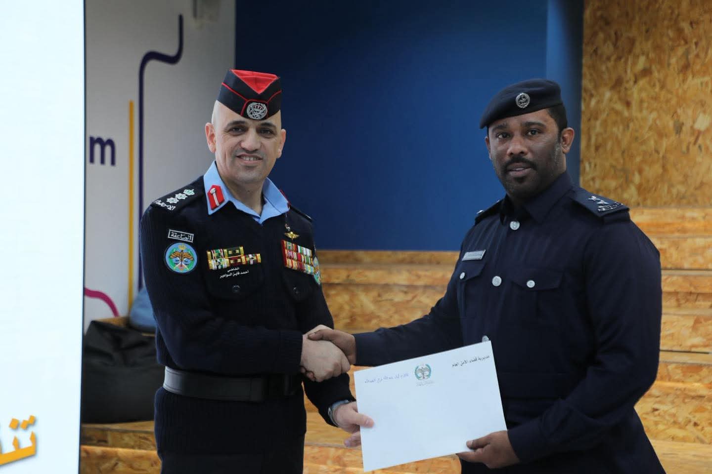 وفي نهاية الحفل وزع العقيد السواعير، الشهادات على المشاركين مؤكدا على أهمية المشاركة في الدورات التدريبية واتباع افضل الممارسات التدريبية التي تعتمد على المشاركة وطرق التدريب الحديثة.