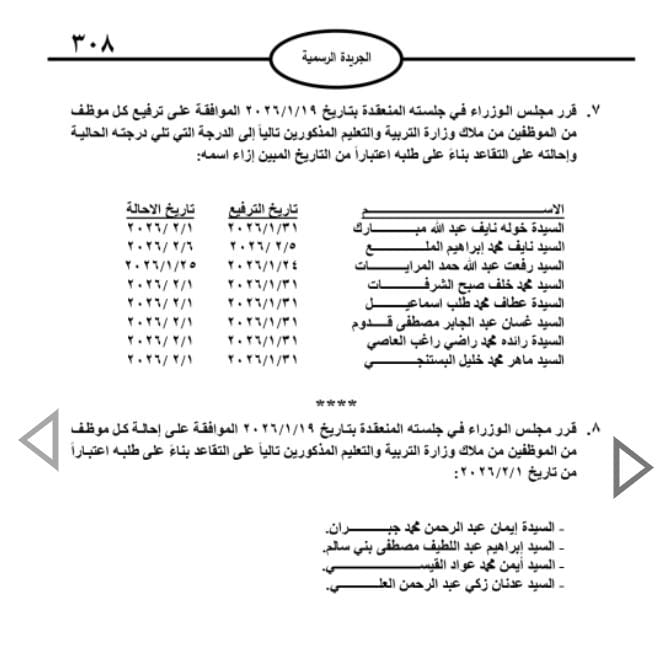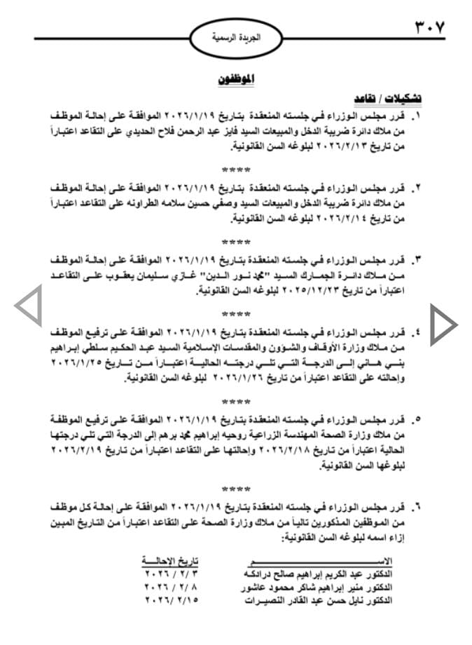 كما تقرر ترفيع وإحالة عدد من الموظفين في عدد من الوزارات والدوائر إلى التقاعد.
