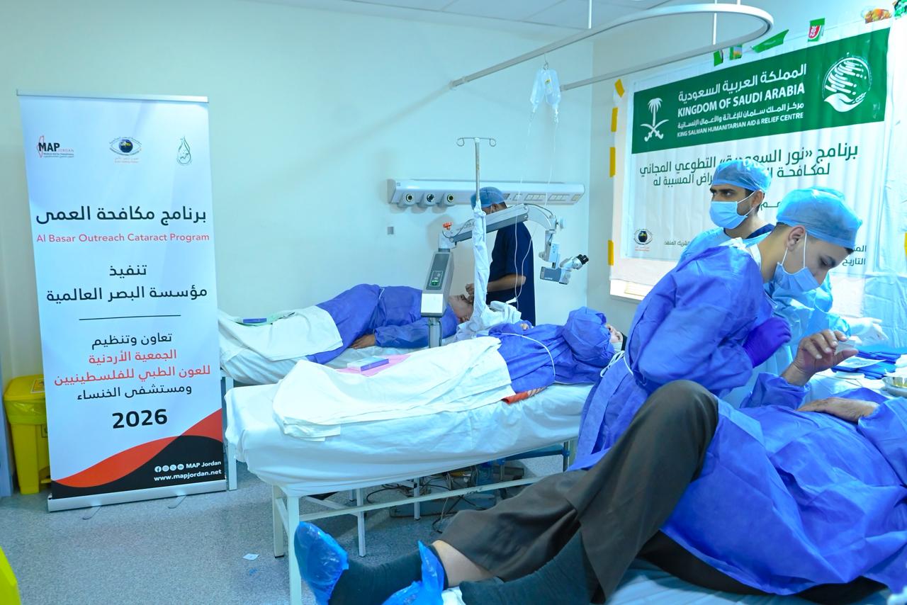 أعلنت مؤسسة البصر العالمية، بالتعاون مع الجمعية الأردنية للعون الطبي للفلسطينيين ومستشفى الخنساء، عن تنفيذ حملة مكافحة العمى (6&7)، وهي حملة طبية متخصصة تهدف إلى فحص وتشخيص وعلاج أمراض العيون، مع تركيز خاص على تشخيص وإزالة الماء الأبيض.