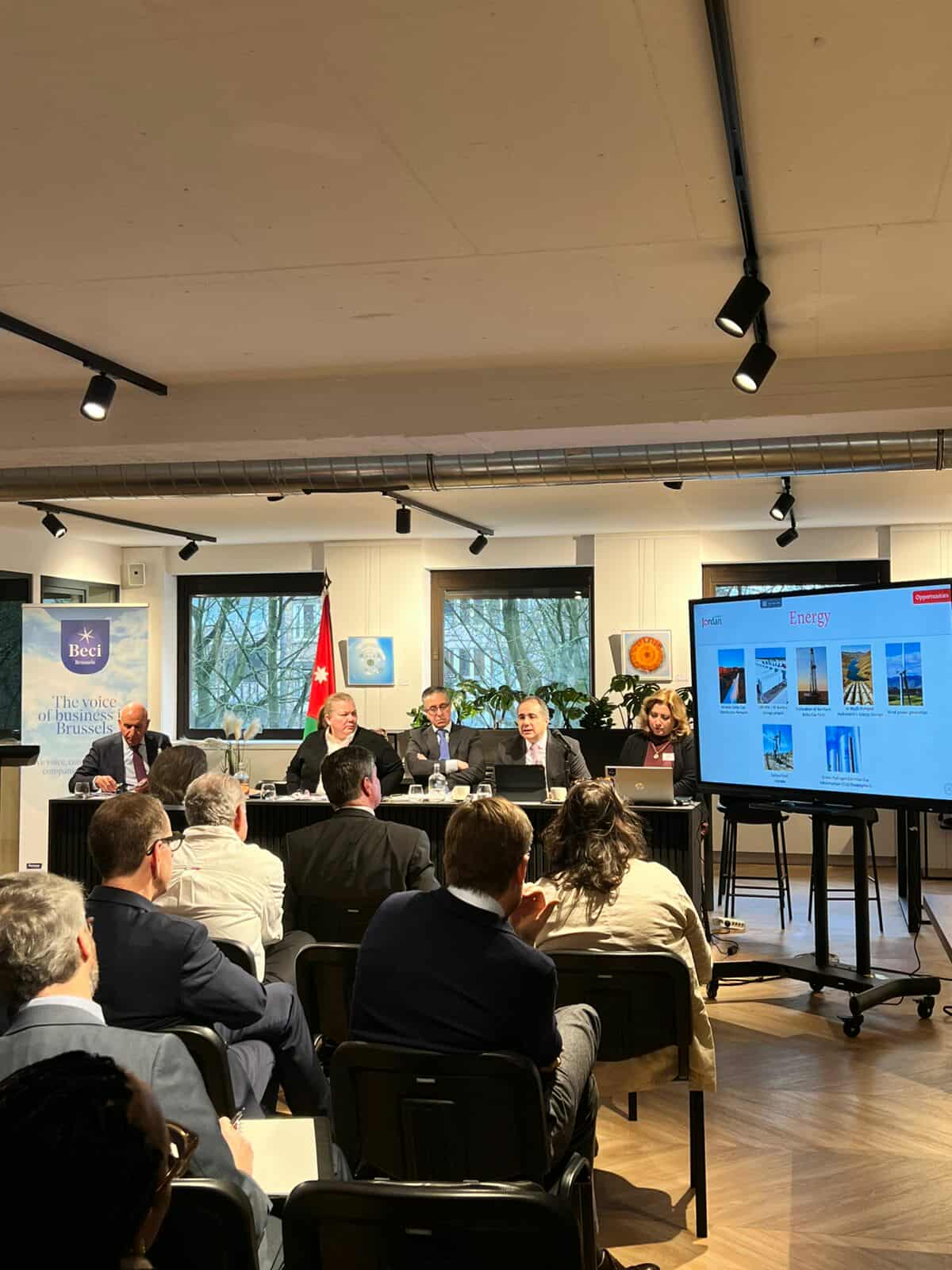كما عقد الوفد في مقر غرفة التجارة العربية-البلجيكية-اللكسمبورغية، لقاءً حضره عددٌ من ممثلي الشركات والقطاع الخاص في بلجيكا، واستعرض الوزراء خلاله أبرز المزايا التنافسية، والفرص الاستثمارية، والبيئة الجاذبة للاستثمار في الأردن.