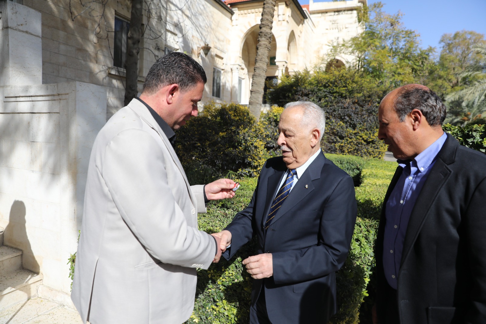 جاء ذلك خلال لقاء جمع رئيس الديوان الملكي الهاشمي، اليوم الأحد، مع وفد من أعضاء اللجنة الوطنية للعسكريين السابقين في الديوان الملكي الهاشمي، بحضور مدير المكتب العسكري الخاص لجلالة الملك العميد الركن رعد العمايرة.