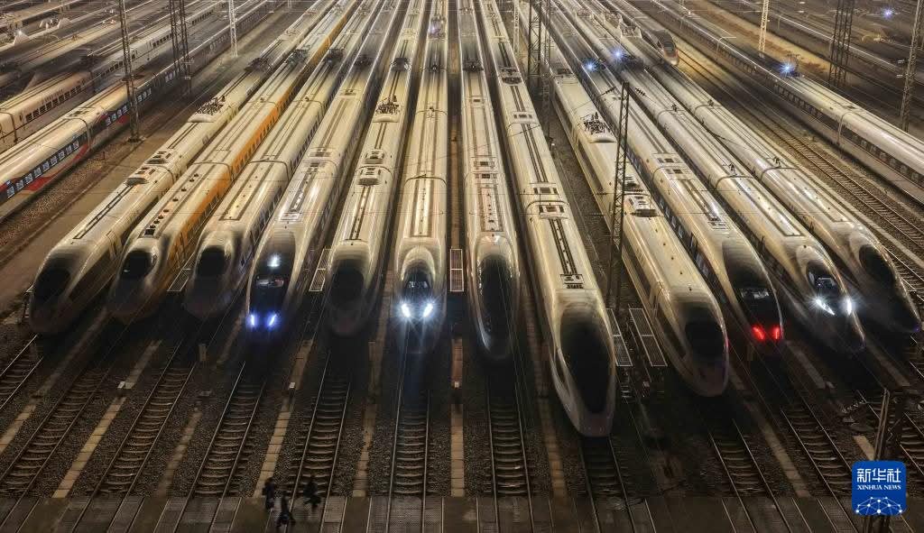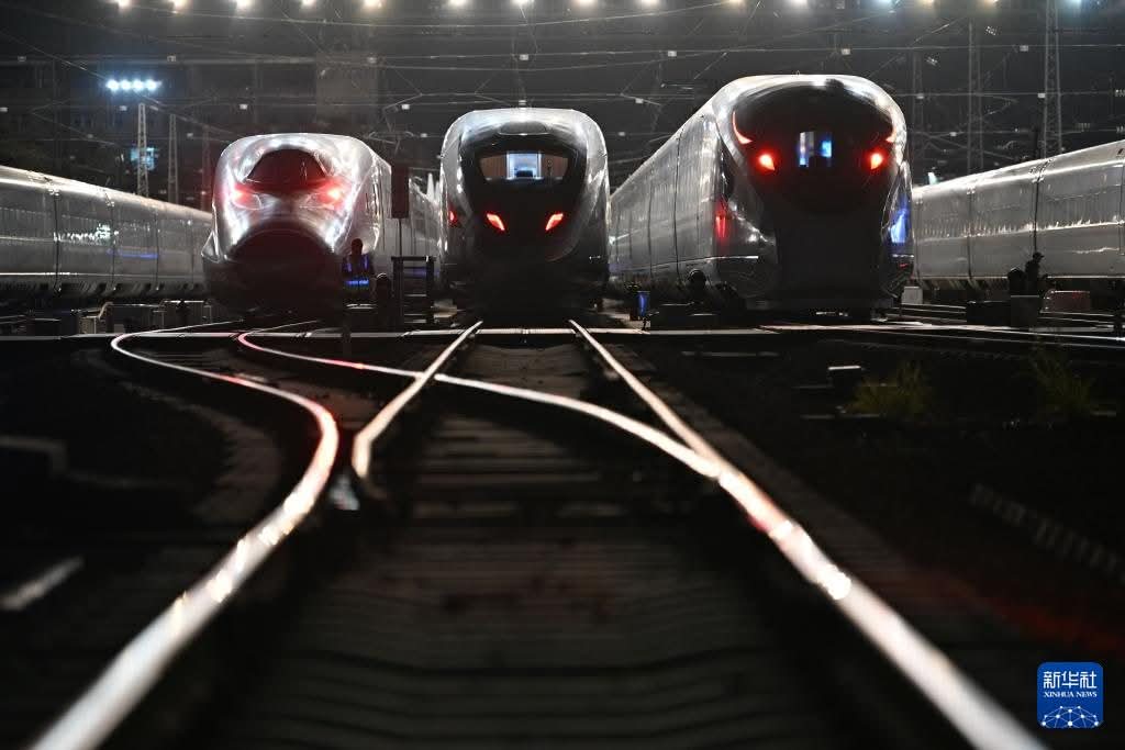ويأتي هذا الاستعداد في إطار تجهيز القطارات لانطلاق رحلاتها القادمة، حيث تعكس الصور حجم البنية التحتية المتقدمة التي تمتلكها الصين في مجال النقل بالقطارات عالية السرعة، والتي تُعد من بين الأكبر والأحدث على مستوى العالم.