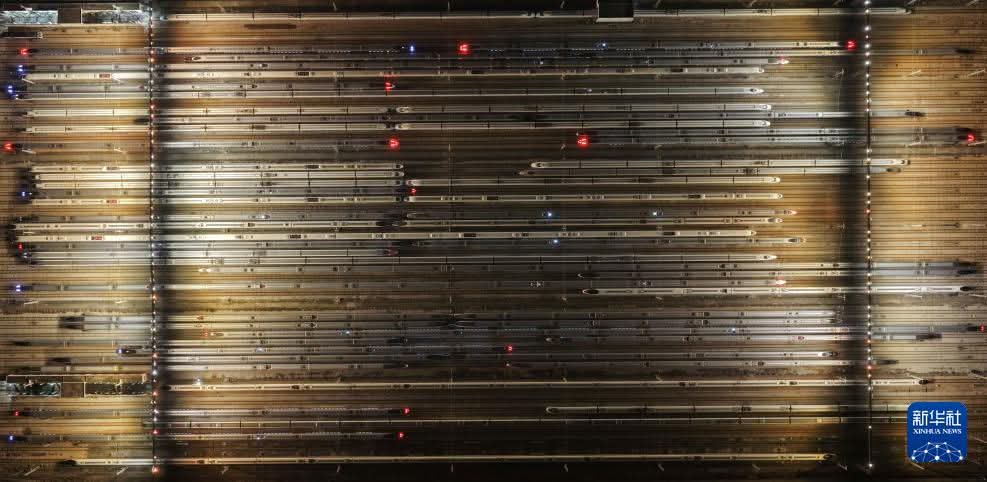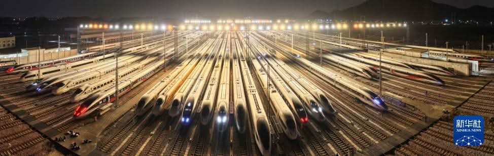 أظهرت صور جوية التقطت في الأول من فبراير الجاري، مشاهد مهيبة لقطارات فائقة السرعة وهي تصطف بشكل منظم في ساحة التخزين التابعة لمستودع قطارات قوانغتشو الكهربائية.