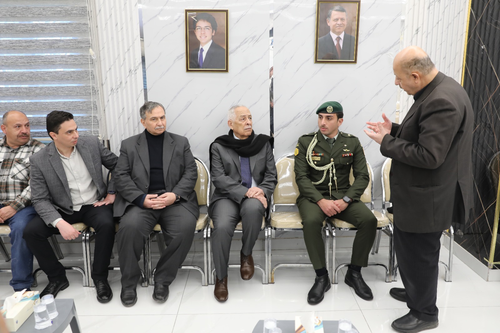 مندوبا عن جلالة الملك عبدالله الثاني وسمو الأمير الحسين بن عبدالله الثاني، ولي العهد، قدّم رئيس الديوان الملكي الهاشمي يوسف حسن العيسوي، اليوم الاثنين، واجب العزاء إلى عشائر الشيشاني وحجازي وأبو السمك.