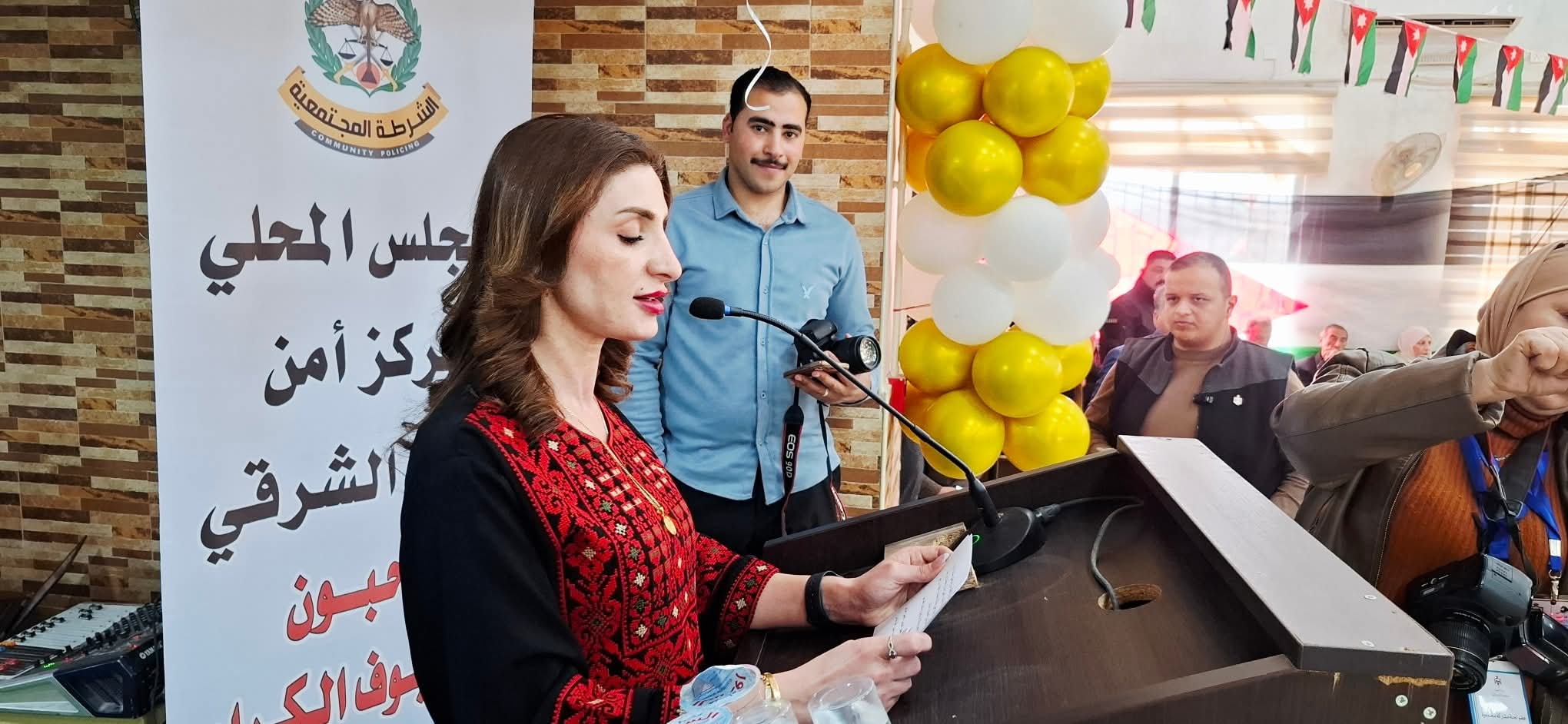 بدورها قالت عضو المجلس المحلي لمركز أمن مادبا الشرقي المهندسة ميس أكثم حدادين ، بدافع الاعتزاز والانتماء نلتقي اليوم لاحياء مناسبة وطنية عزيزة على قلوبنا الا وهي عيد ميلاد حضرة صاحب الجلاله الهاشمية الملك عبد الله الثاني بن الحسين حفظه الله ورعاه ، القائد الذي قائد الوطن برؤية ثاقبة وجعلنا من الإنسان الأردني محور البناء ومن التماسك المجتمعي ركيز ألأمن والاستقرار ..