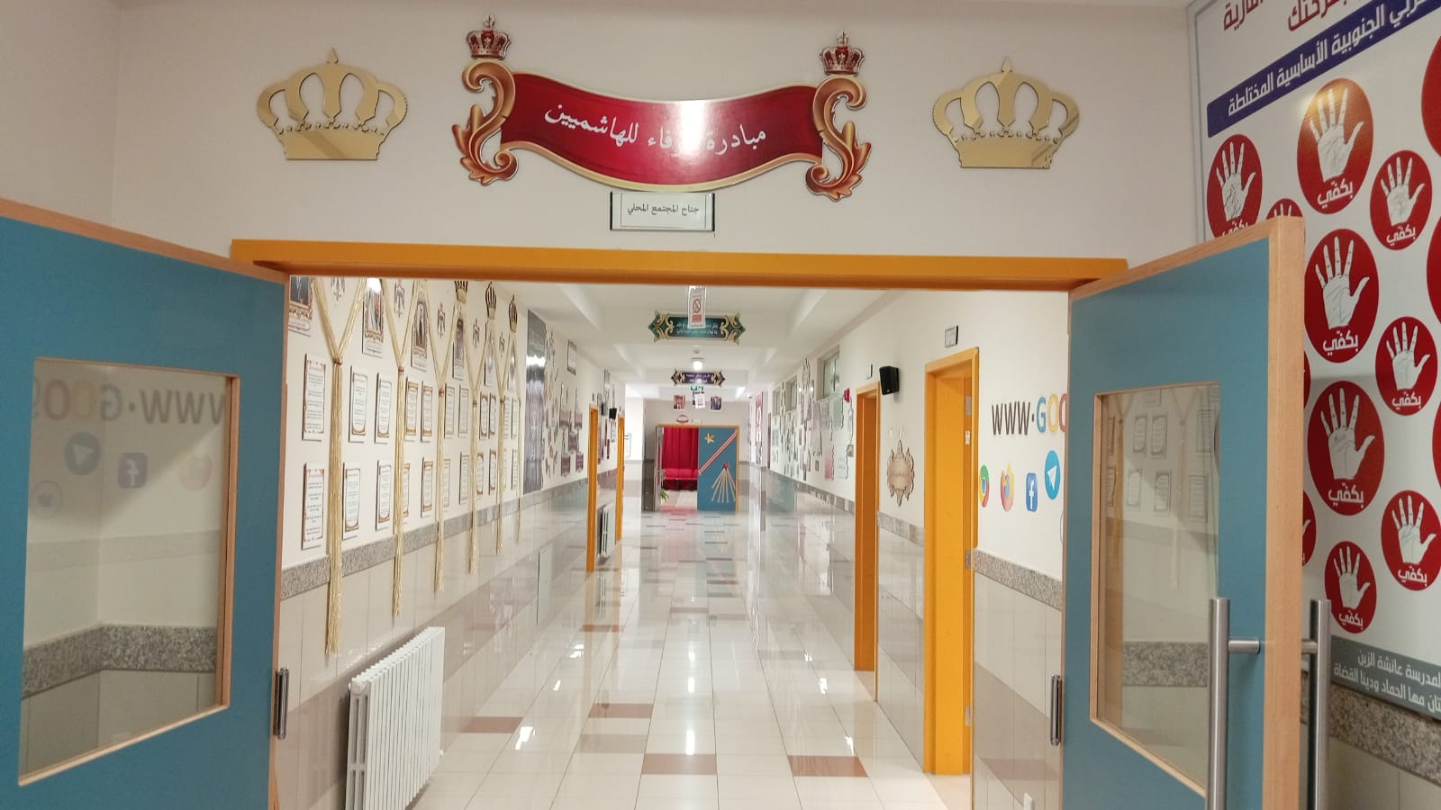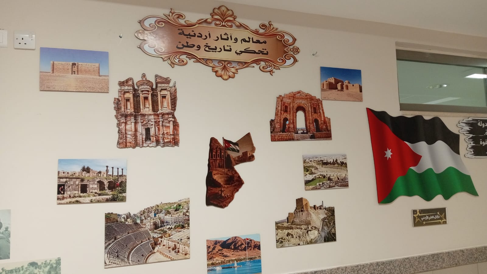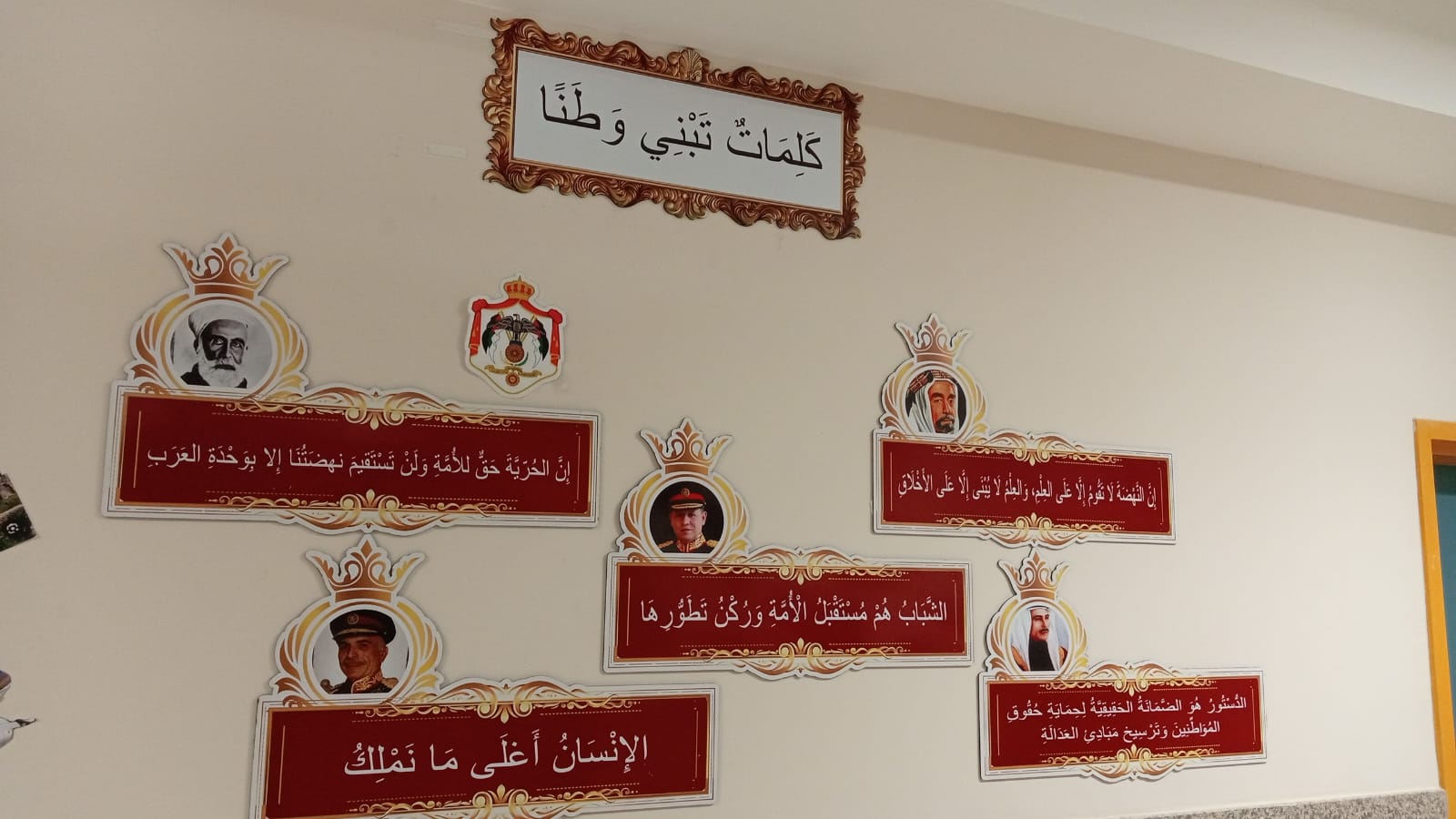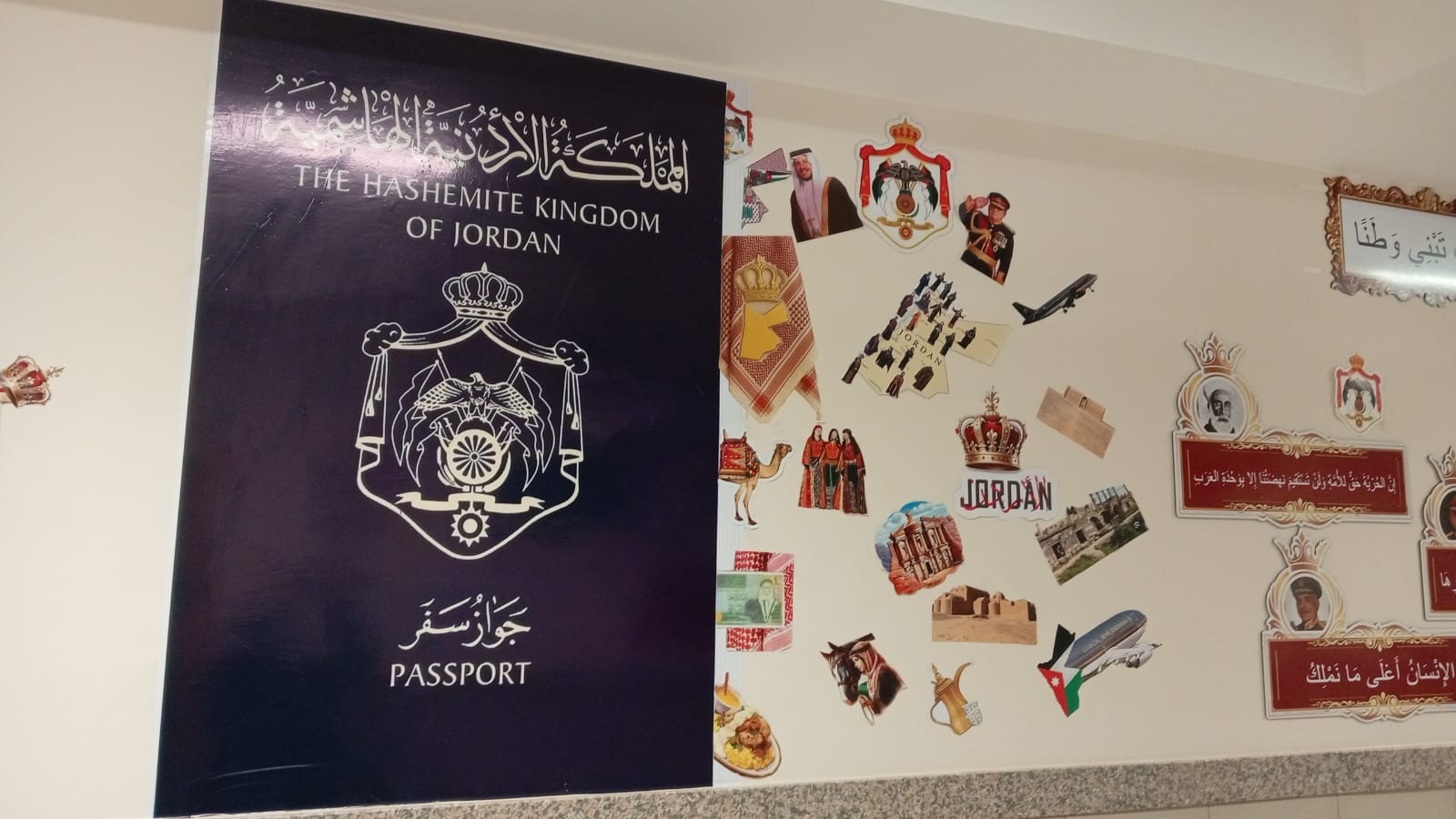 وتم تنفيذ المعرض في أحد الممرات الداخلية للمدرسة، مستغلة المكان بشكل مبتكر لعرض محتوى يبرز قيم الولاء والانتماء للقيادة الهاشمية.