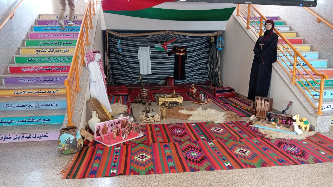 افتتحت مدرسة رجم الشامي الغربي الجنوبية الأساسية المختلطة معرض "الوفاء للهاشميين"، الذي استمر العمل على إعداده لمدة ثلاثة أسابيع، بمشاركة فعّالة من كادر المدرسة بقيادة المديرة عائشة الزبن ومعلمات المدرسة.