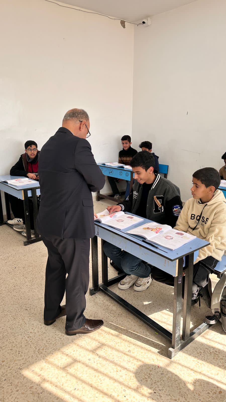 قام مدير التربية والتعليم لمديرية البادية الجنوبية، الدكتور عماد السفاسفة، اليوم الأربعاء الموافق ٤/٢/٢٠٢٦، بزيارة مدرستي بنات النقب الثانوية ومدرسة ذكور النقب الثانوية . تهدف هذه الزيارة إلى متابعة سير العملية التعليمية وتقييم الأوضاع التعليمية في مدارس البادية الجنوبية، بالإضافة إلى لقاء الطلبة وتوجيههم. خلال الجولة تفقد السفاسفة مرافق المدرسة، واطلع على سجلات الدوام الرسمي للهيئة الإدارية والتدريسية، وتفقد دوام الطلاب. كما حضر جزءاً من الحصص الدراسية للاطلاع على المستوى التحصيلي وحاجات الطلبة.