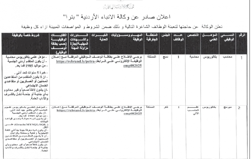 أعلنت عدد من الدوائر الحكومية، والمؤسسات التابعة للحكومة، عن رغبتها في ملء شواغر وظيفية لديها.
