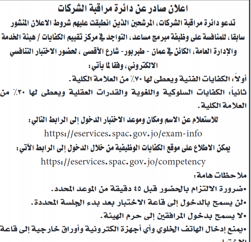 كما دعت دوائر أيضًا، متقدمين للامتحانات التنافسية بالاطلاع على مواعيد امتحاناتهم.