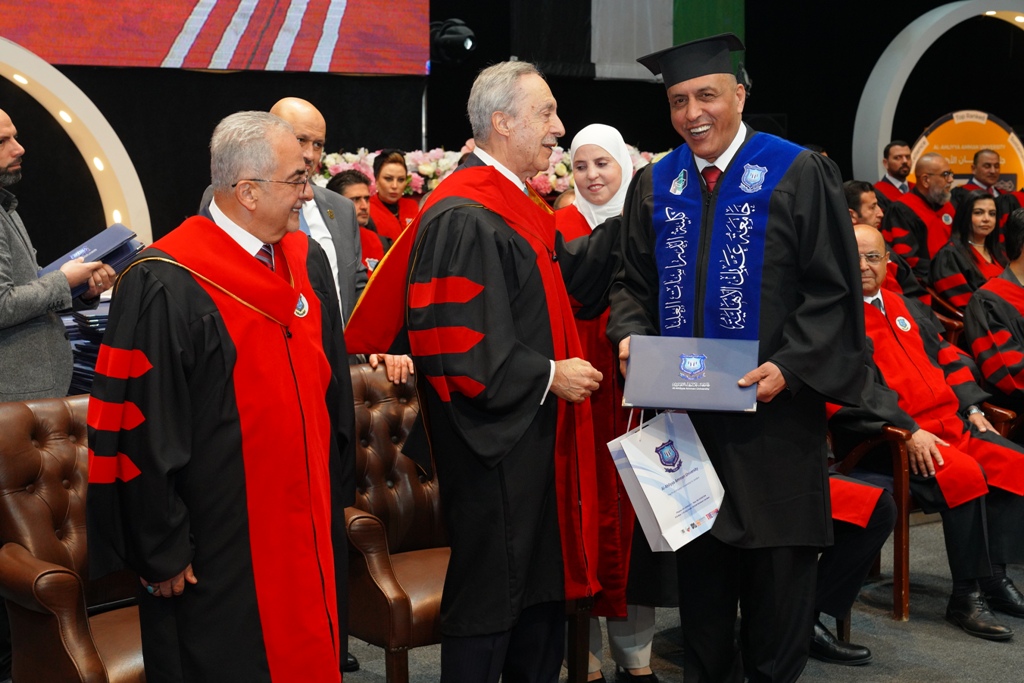 وأضاف : إنه لشرفٍ لنا أن نحتفل بهذا الإنجاز في جامعةٍ عريقة، أسسها المؤسس الراحل الدكتور أحمد الحوراني، طيب الله ثراه، مؤمنًا بأن التعليم هو حجر الأساس في بناء الأوطان وصناعة المستقبل. ومن تلك الرؤية الراسخة، تواصل جامعة عمّان الأهلية اليوم مسيرتها بثباتٍ وثقة، مستندةً إلى دعمٍ صادق ورؤيةٍ نافذة لعطوفة الدكتور ماهر الحوراني، رئيس هيئة المديرين، الذي جعل من تمكين الجامعة وتعزيز مكانتها خيارًا استراتيجيًا لا يعرف التراجع. ويقود هذه المسيرة الأستاذ الدكتور ساري حمدان، رئيس الجامعة، بعقلٍ استراتيجي وحكمةٍ راسخة، واضعًا التميز الأكاديمي والتطوير المؤسسي في صميم القرار والعمل. وبهذا الانسجام في القيادة، وهذا الالتزام في الرؤية، ترسّخت جامعة عمّان الأهلية أنموذجًا وطنيًا رائدًا، ومؤسسةً أكاديمية يُشار إليها بالبَنان على المستويات المحلية والإقليمية والدولية.