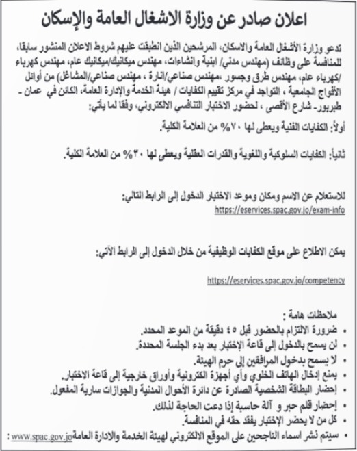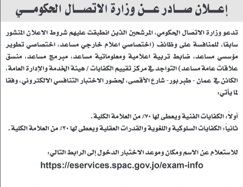 هذا، ودعت دوائر حكومية المرشحين الذين انطبقت عليهم شروط الاعلان المنشور سابقا للامتحان التنافسي.
