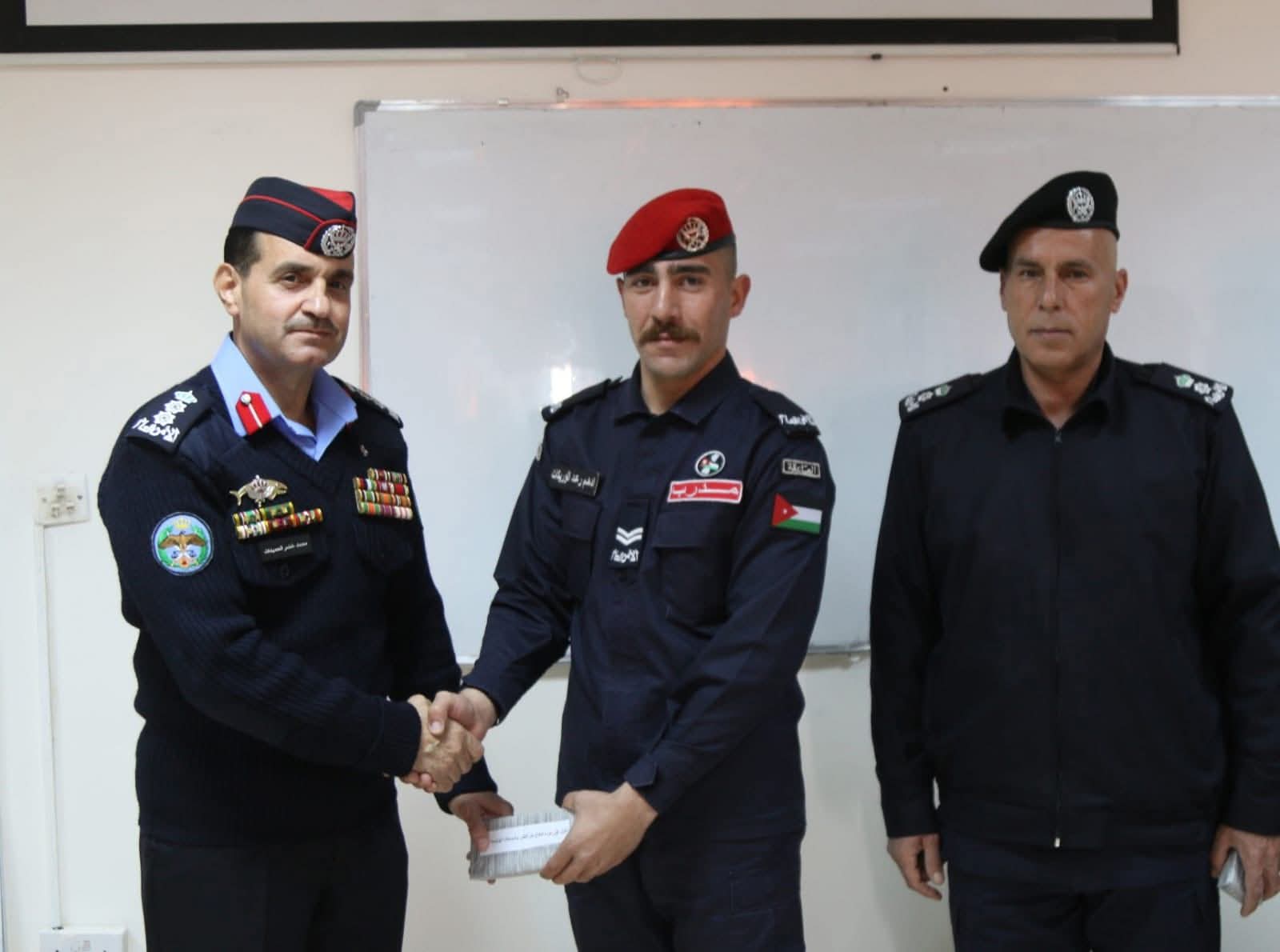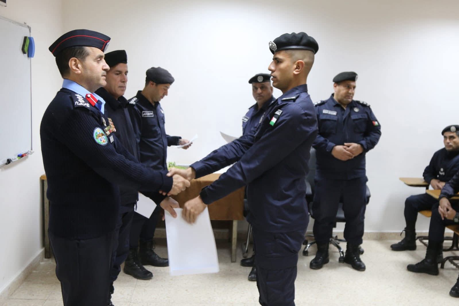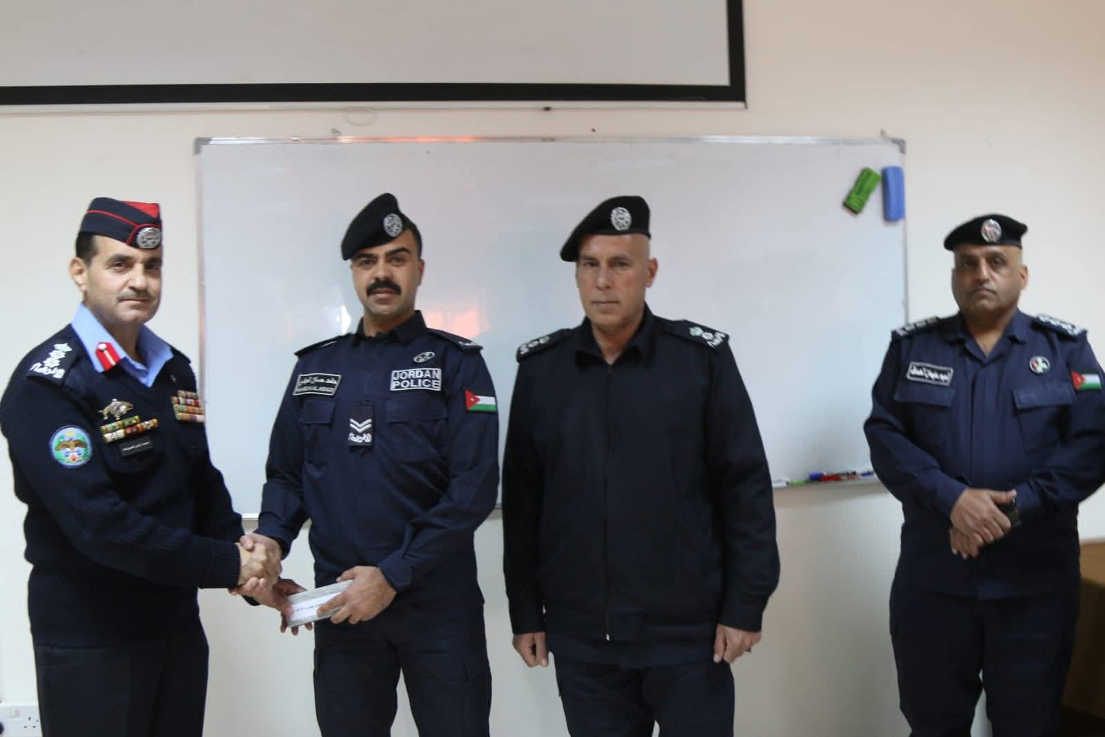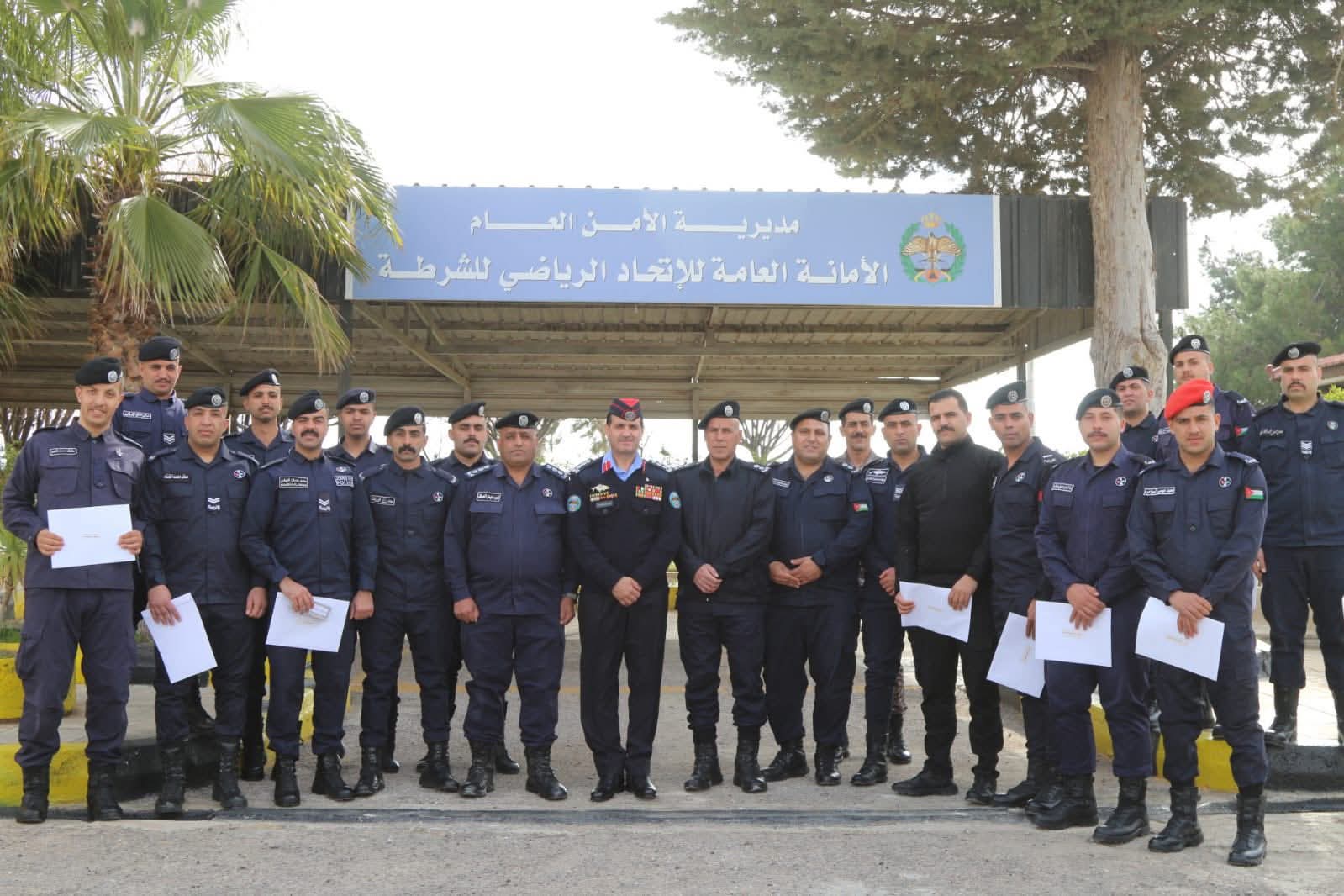 وفى نهاية التخريج وزع راعي الحفل الأمين العام للاتحاد الرياضي للشرطة العقيد محمد الحميدات الشهادات على الخريجين .