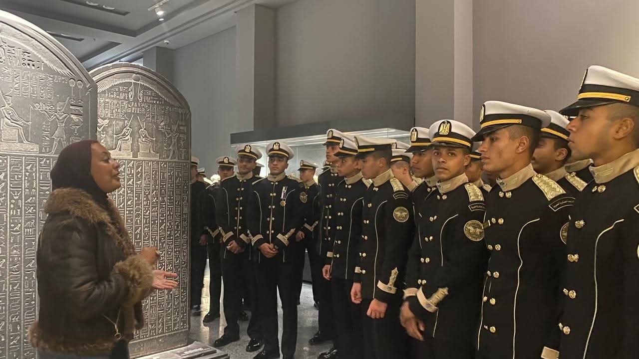 خلال لقائها بطلاب الأكاديمية على أهمية هذه الزيارات في ربط أجيال المستقبل بتراثهم الحضاري مشيرة إلى الدور الذي يلعبه المتحف كمنارة تعليمية وثقافية تتكامل مع كافة مؤسسات الدولة ، كما اكدت علي دور المتحف المحوري في صياغة الوعي الثقافي والوطني مشيدةً بالأنضباط والروح العالية التي أظهرها طلاب الكلية البحريه موضحه، أن ما يضمه هذا المتحف من كنوز ليس مجرد آثار بل هو إرثٌ يمنحنا الفخر ويدفعنا لصون تراب هذا الوطن ومستقبله