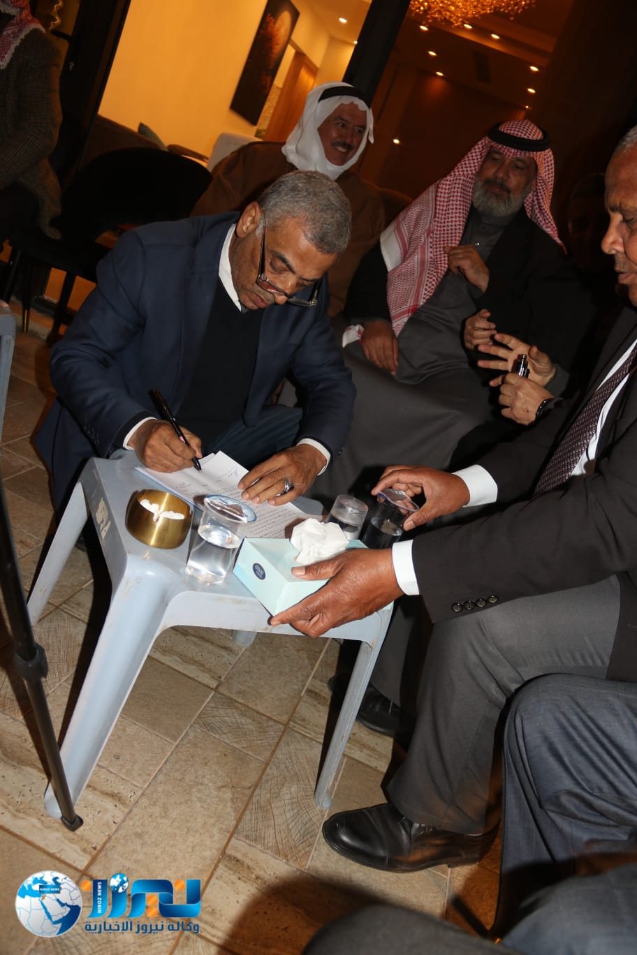 وعين كفيلا للوفا عن عشيرة البطارسة ياسر عقل عوده عكروش وكفيل للوفا عن عشيرة الزعمط السفير عبدالله العفيشات العجارمة وكفيلا للدفا عن عشيرة قطيش الباشا يوسف الفاعوري .