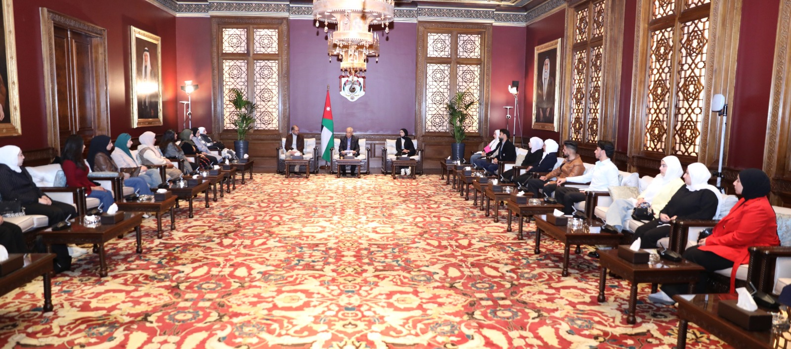 وأكد أن أبواب الديوان الملكي الهاشمي مفتوحة دائماً أمامهم، تنفيذاً للتوجيهات الملكية السامية، كما هي مفتوحة أمام جميع الأردنيين، للاستماع إلى أفكارهم ومقترحاتهم ودعم جهودهم.