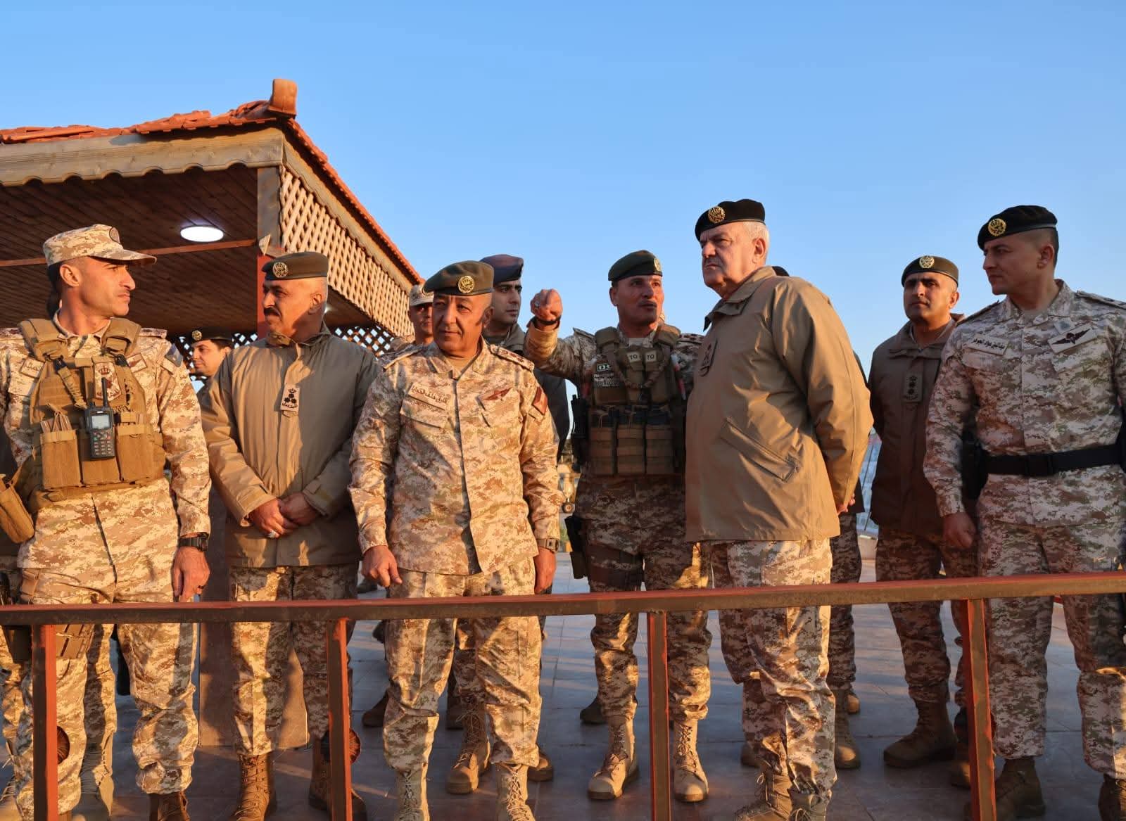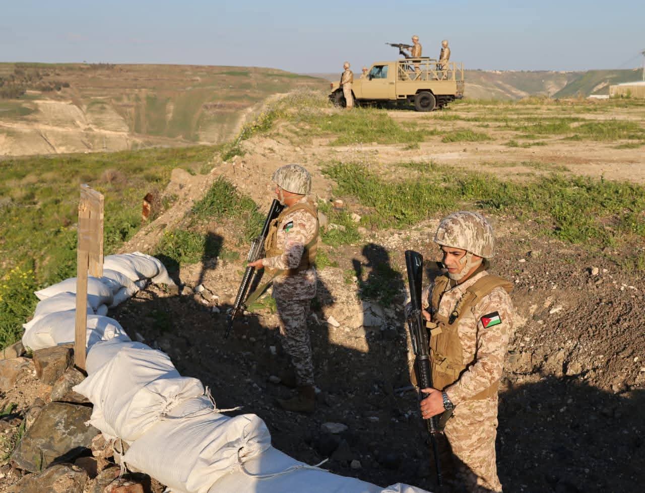 كما تفقد اللواء الركن الحنيطي لواء حرس الحدود /2، واطلع على الإجراءات المتخذة لحماية الحدود ومنع محاولات التسلل والتهريب، مؤكداً أن القوات المسلحة الأردنية ماضية في تعزيز وحدات حرس الحدود بالأجهزة والمعدات والأسلحة اللازمة بشكل يسهم في تنفيذ واجباتها ومهامها.