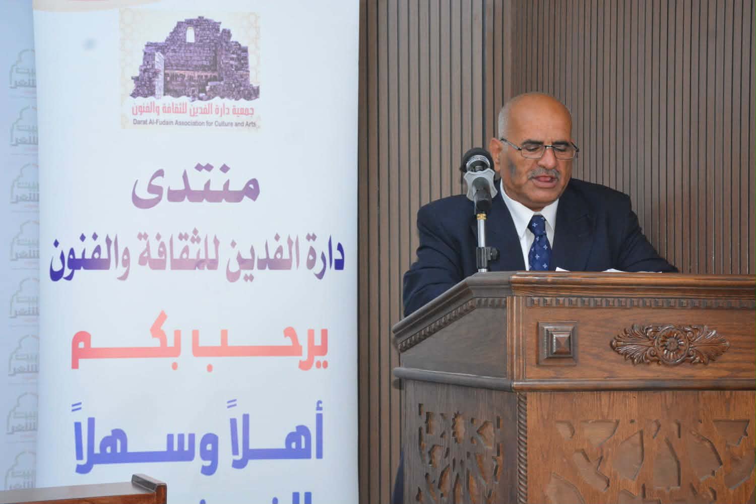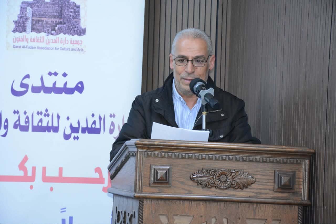 بدوره، ألقى رئيس منتدى دارة الفدين محمد شريف البدارين كلمة المنتدى، شدد فيها على أهمية العمل الثقافي ودوره في تنمية الوعي المجتمعي وإبراز الطاقات الأدبية والإبداعية.