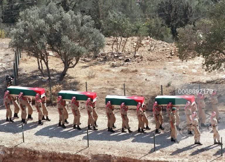 وجرت مراسم الجنازة العسكرية بحضور نحو 130 جنديًا أردنيًا، حيث أدّى الجنود التحية العسكرية للنعوش التي لُفّت بالعلم الأردني، في لحظة مؤثرة جسّدت الوفاء لتضحيات من قدّموا أرواحهم دفاعًا عن الوطن.
