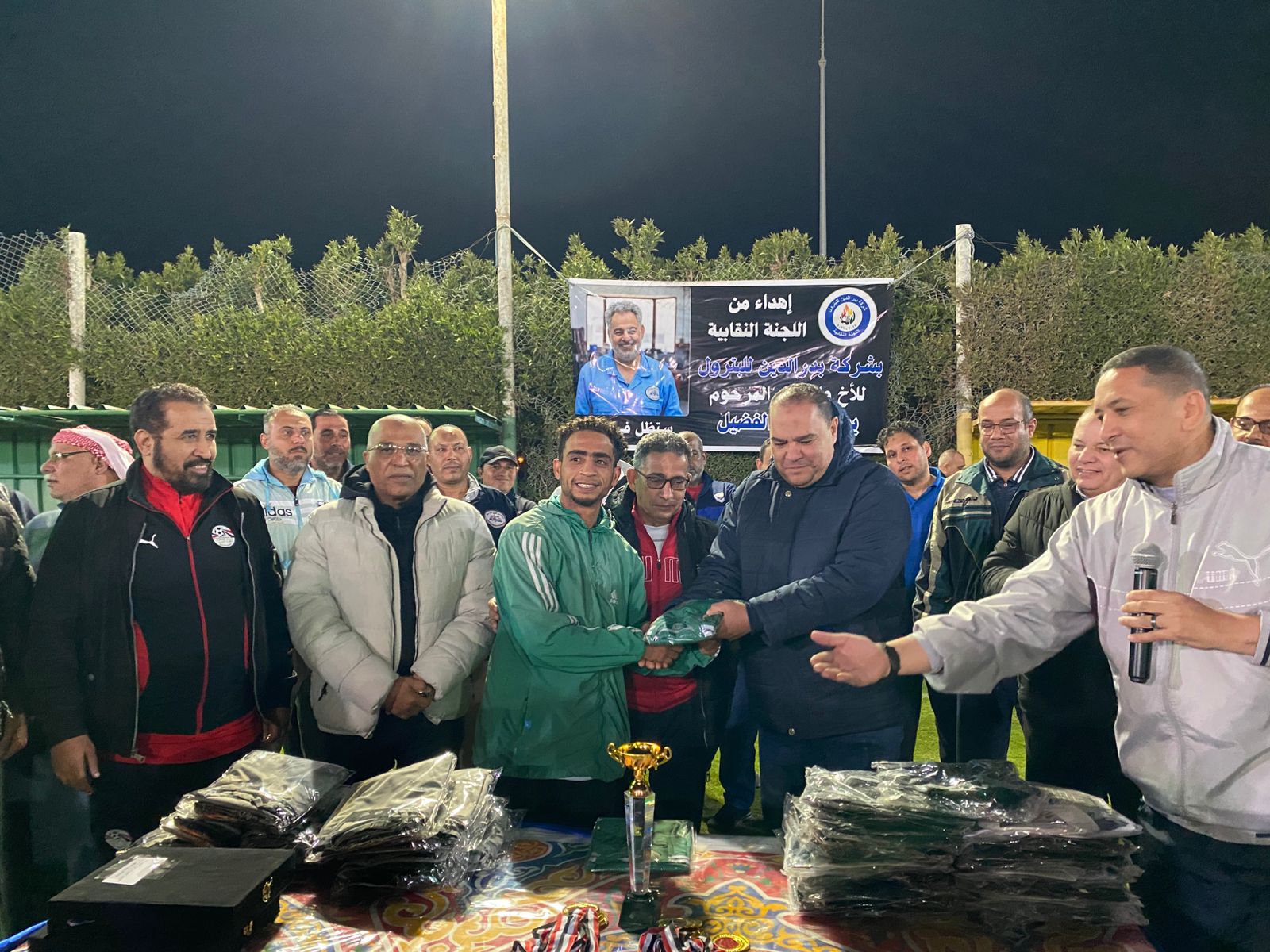 وأقيمت المباراة في ضيافة المهندس أسامة السنوسي مدير عام حقول الأبيض، وبحضور الدكتور محمد محفوظ عمران أمين عام اللجنة النقابية، والسيد أشرف عطية أمين الصندوق المساعد بشركة بدر الدين للبترول، إلى جانب عدد كبير من العاملين ومديري العموم بحقل الأبيض.