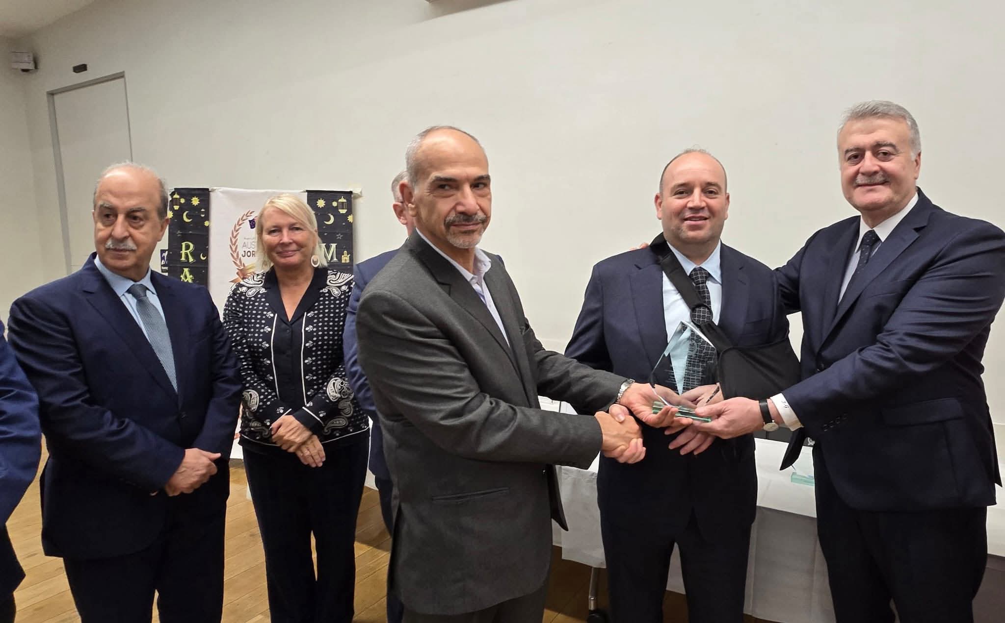 وجاء التكريم خلال الحفل السنوي التاسع لتكريم الخريجين الأردنيين، والذي تزامن مع حفل الإفطار السنوي للجمعية الأسترالية الأردنية، وذلك بحضور ورعاية سعادة سفير المملكة الأردنية الهاشمية لدى أستراليا جانتي قلاجوقة.