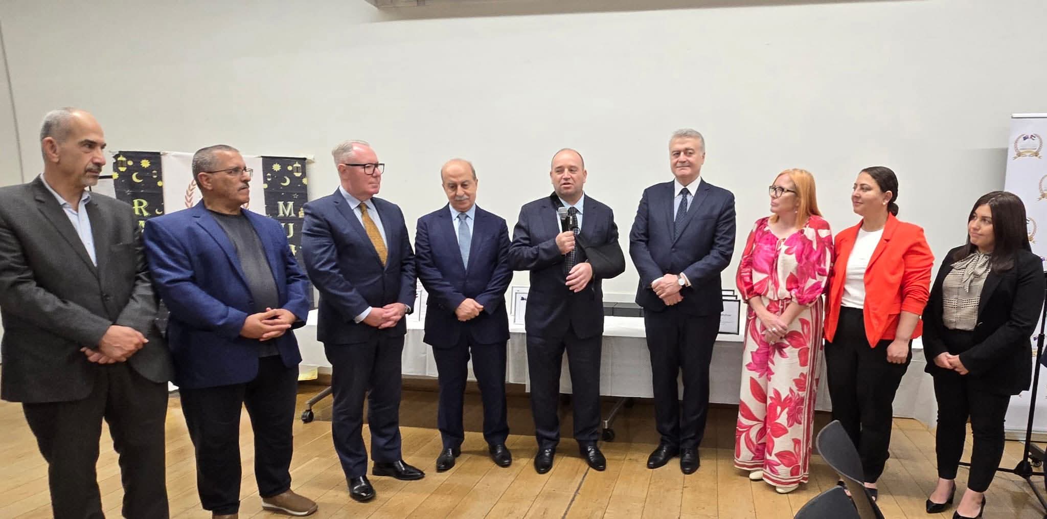 وشهد الحفل حضور سعادة القنصل العام للجمهورية العربية السورية، إلى جانب رئيس الهيئة الإدارية لجمعية الأسرة الأردنية جريس العبسي وعدد من أعضاء الهيئة الإدارية للجمعية، إضافة إلى حضور عدد من المشايخ والنواب ورؤساء وأعضاء البلديات، وممثلين عن الجمعيات العربية والمؤسسات الأسترالية الرسمية.