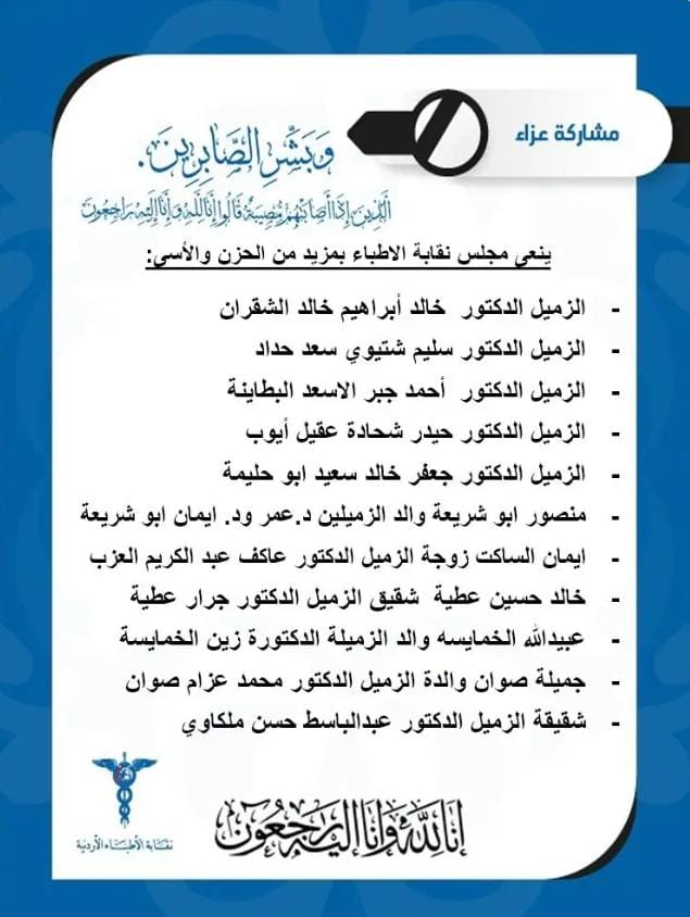 نقابة الاطباء الاردنية تنعى وفاة 5 اطباء اردنيين .. اسماء
