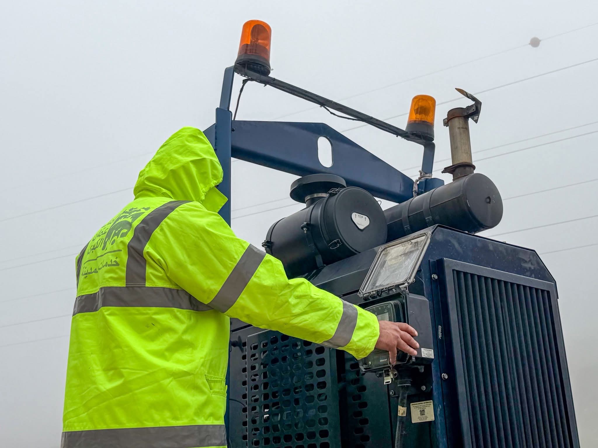 وعملت الفرق الميدانية على فتح وتصريف مياه الأمطار في الشوارع الرئيسية والفرعية، ومعالجة مواقع تجمع المياه، إلى جانب متابعة عمل شبكات تصريف المياه بشكل مستمر، حفاظًا على انسيابية الحركة المرورية وسلامة المواطنين.