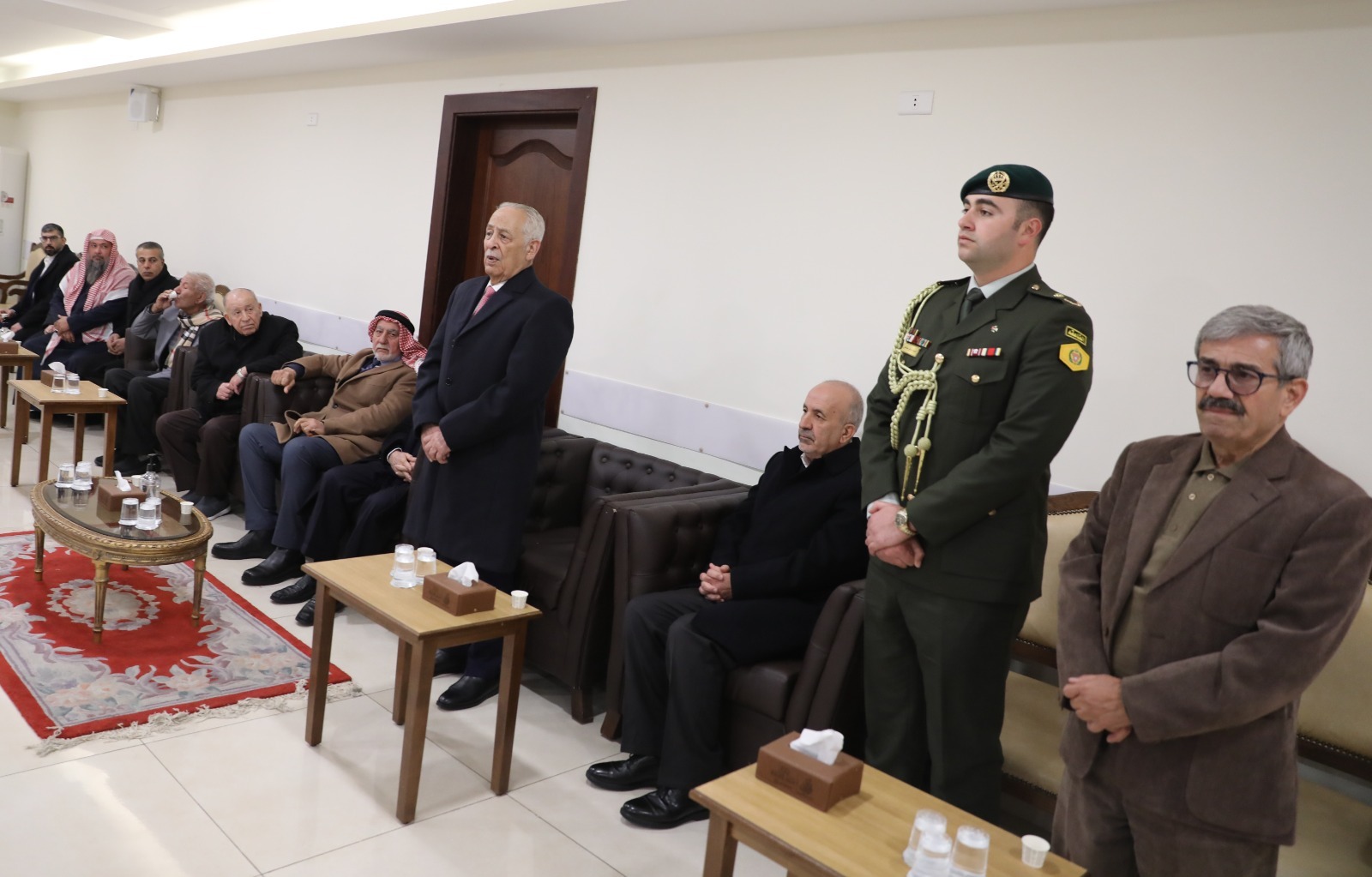 عمان-:  مندوبا عن جلالة الملك عبدالله الثاني وسمو الأمير الحسين بن عبدالله الثاني، ولي العهد، قدم رئيس الديوان الملكي الهاشمي يوسف حسن العيسوي، اليوم الخميس، واجب العزاء إلى آل صالح بوفاة أحمد محمد صالح.