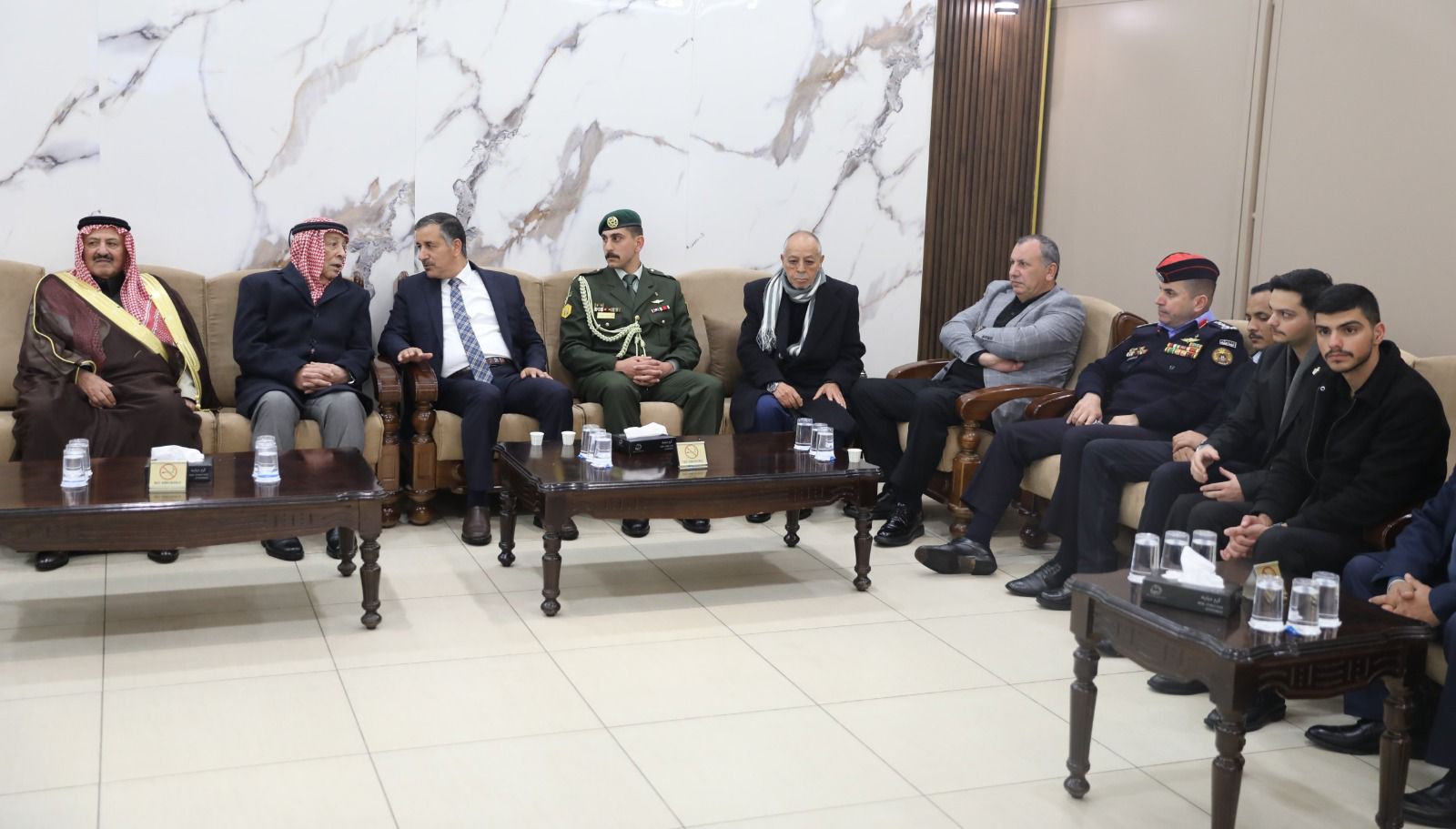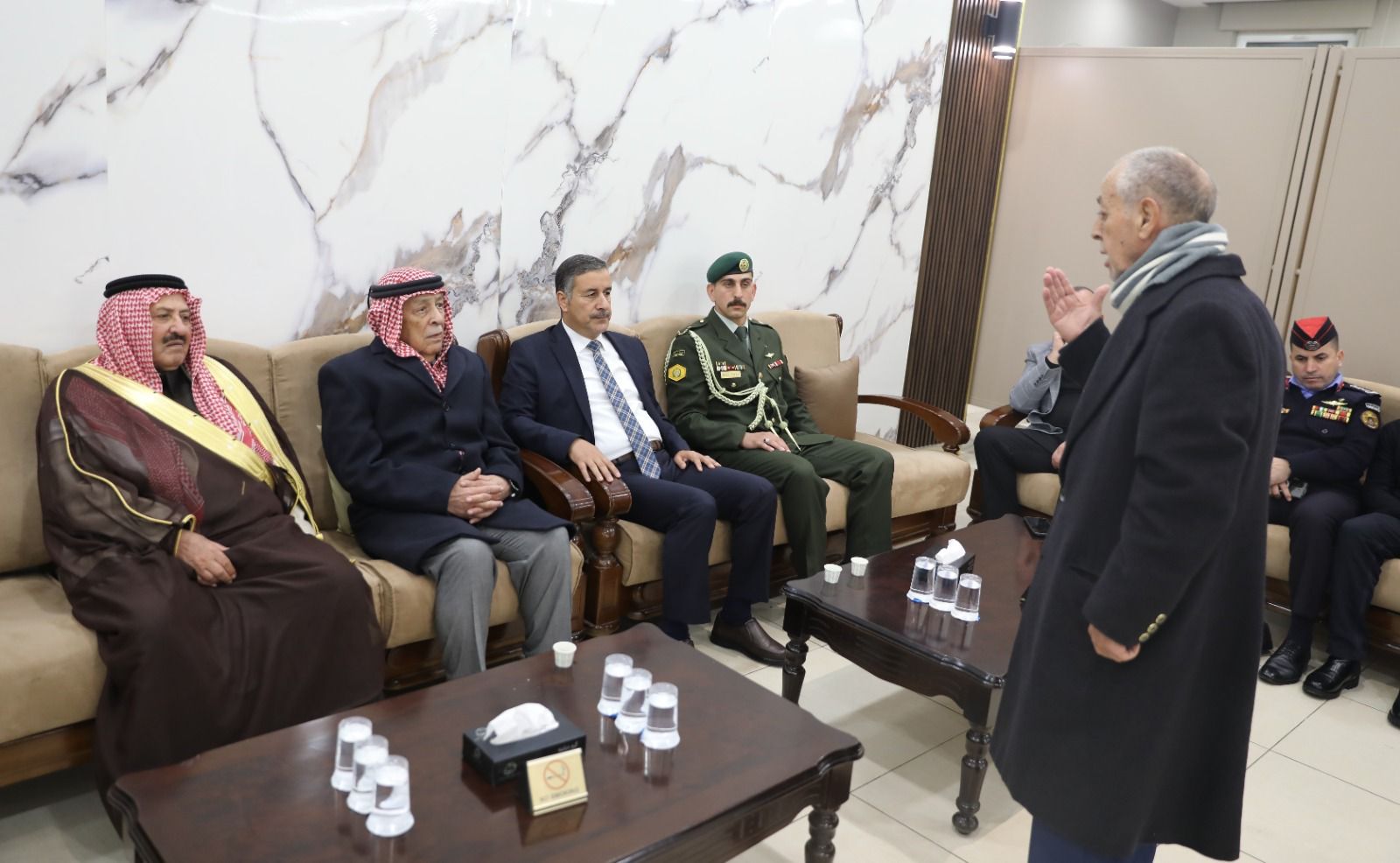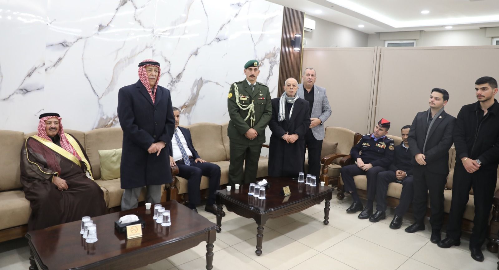*وفي مدينة السلط بمحافظة البلقاء*، نقل العيسوي، خلال زيارته بيت عزاء المرحوم عبداللطيف محمد النسور، تعازي ومواساة جلالة الملك وسمو ولي العهد، إلى ذوي الفقيد وعموم عشيرة النسور، سائلًا المولى عز وجل أن يتغمده بواسع رحمته.