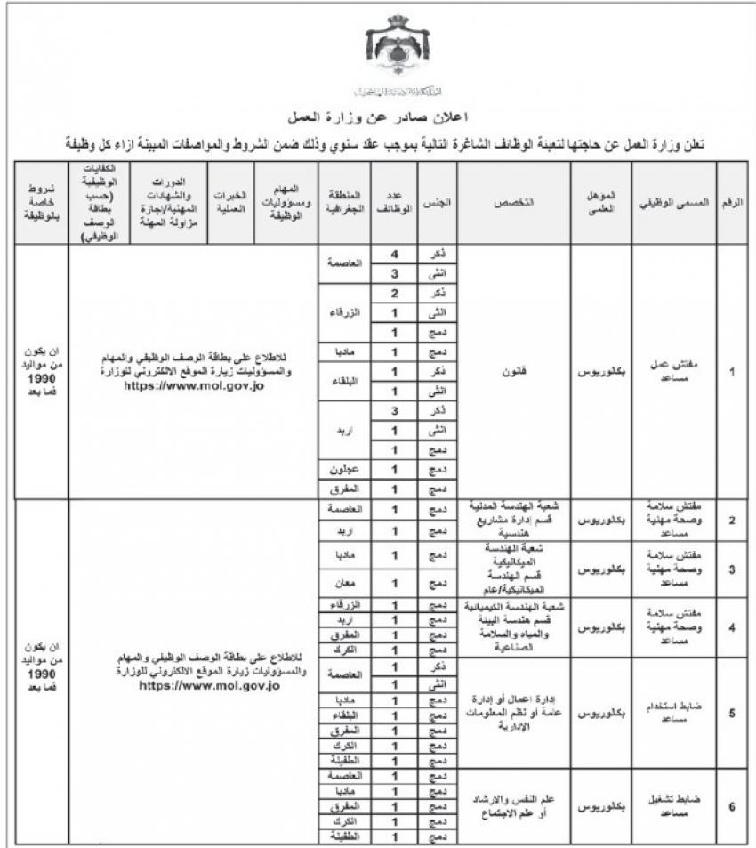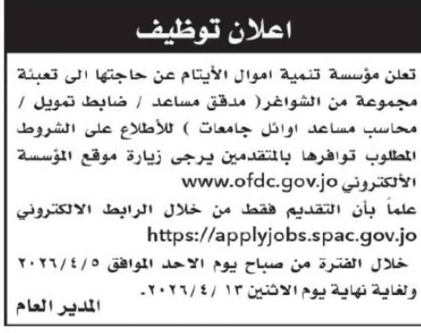 أعلنت دوائر ومؤسسات حكومية اليوم الخميس، عن حاجتها لتعبئة وظائف شاغرة.
