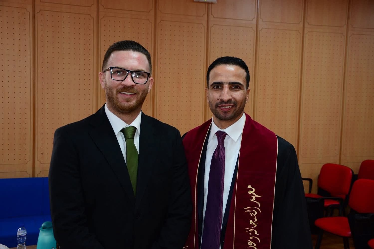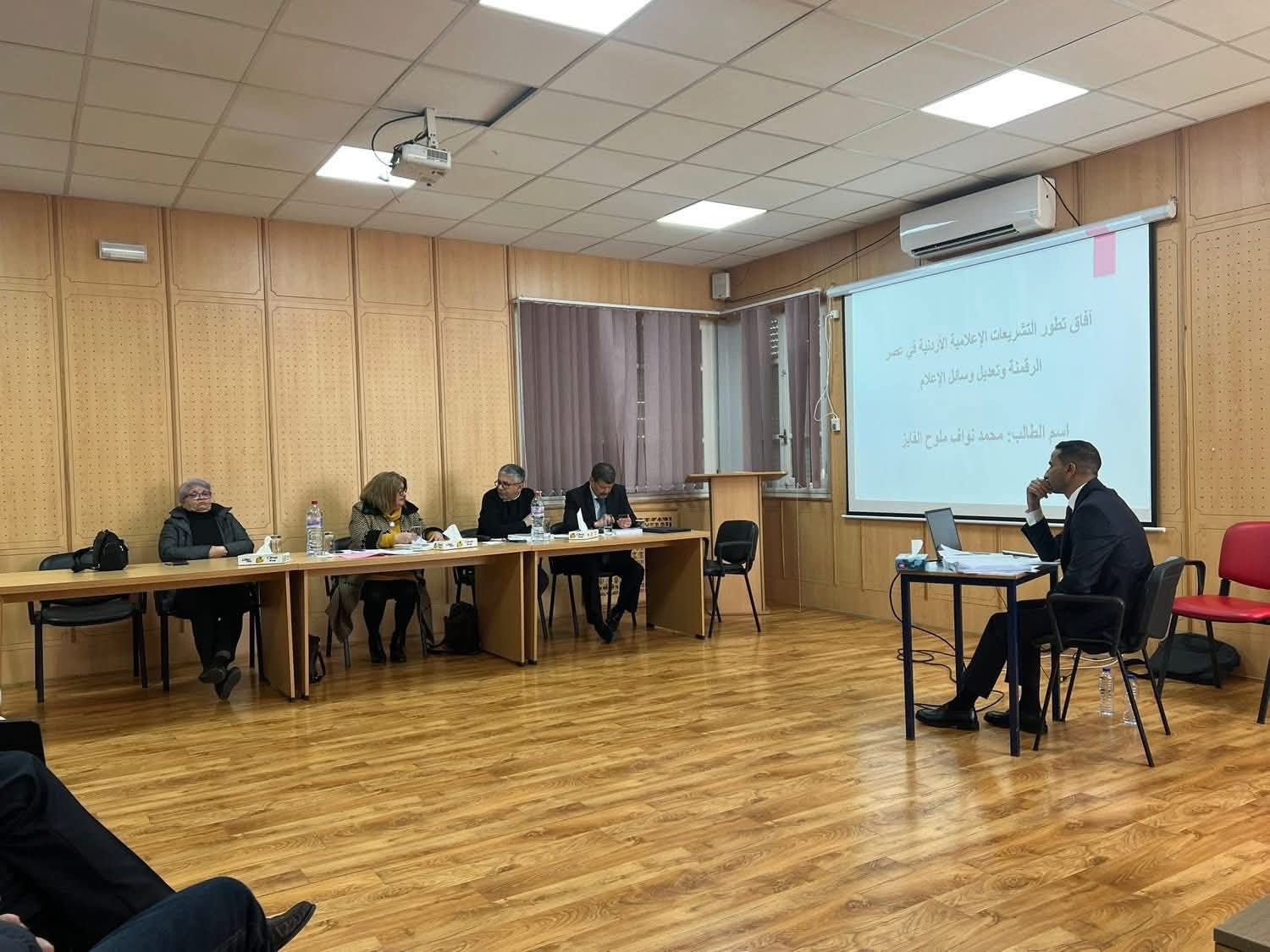 وقد حضر مناقشة رسالة الدكتوراه عدد من الشخصيات، من بينهم السفير الأردني في تونس والشيخ نواف الفايز، والشيخ ثامر ملوح الفايز، إلى جانب جمع من أبناء عائلة الفايز، في أجواء احتفالية عكست الفخر بهذا الإنجاز.