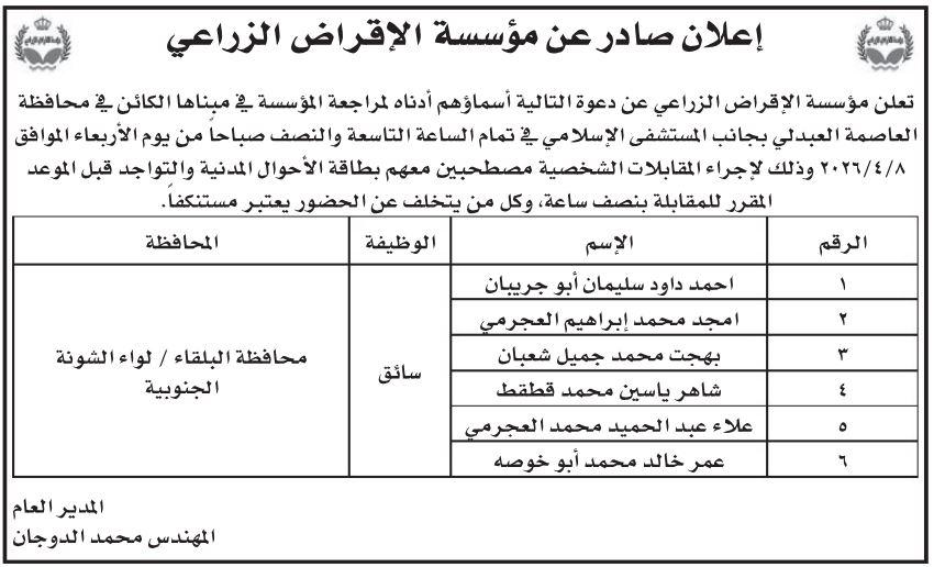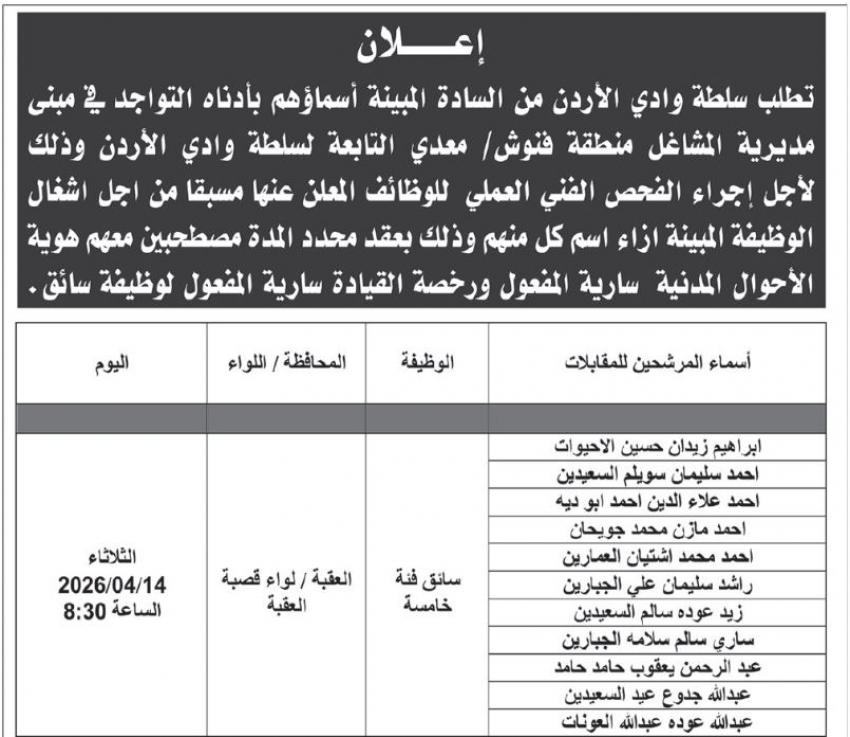 أعلنت مؤسسات وشركات حكومية اليوم الاثنين عن حاجتها لتعبئة شواغر مختلفة، فيما اعلنت اخرى عن دعوة اشخاص لاجراء المقابلات الشخصية، والفحص الطبي للوظيفة.
