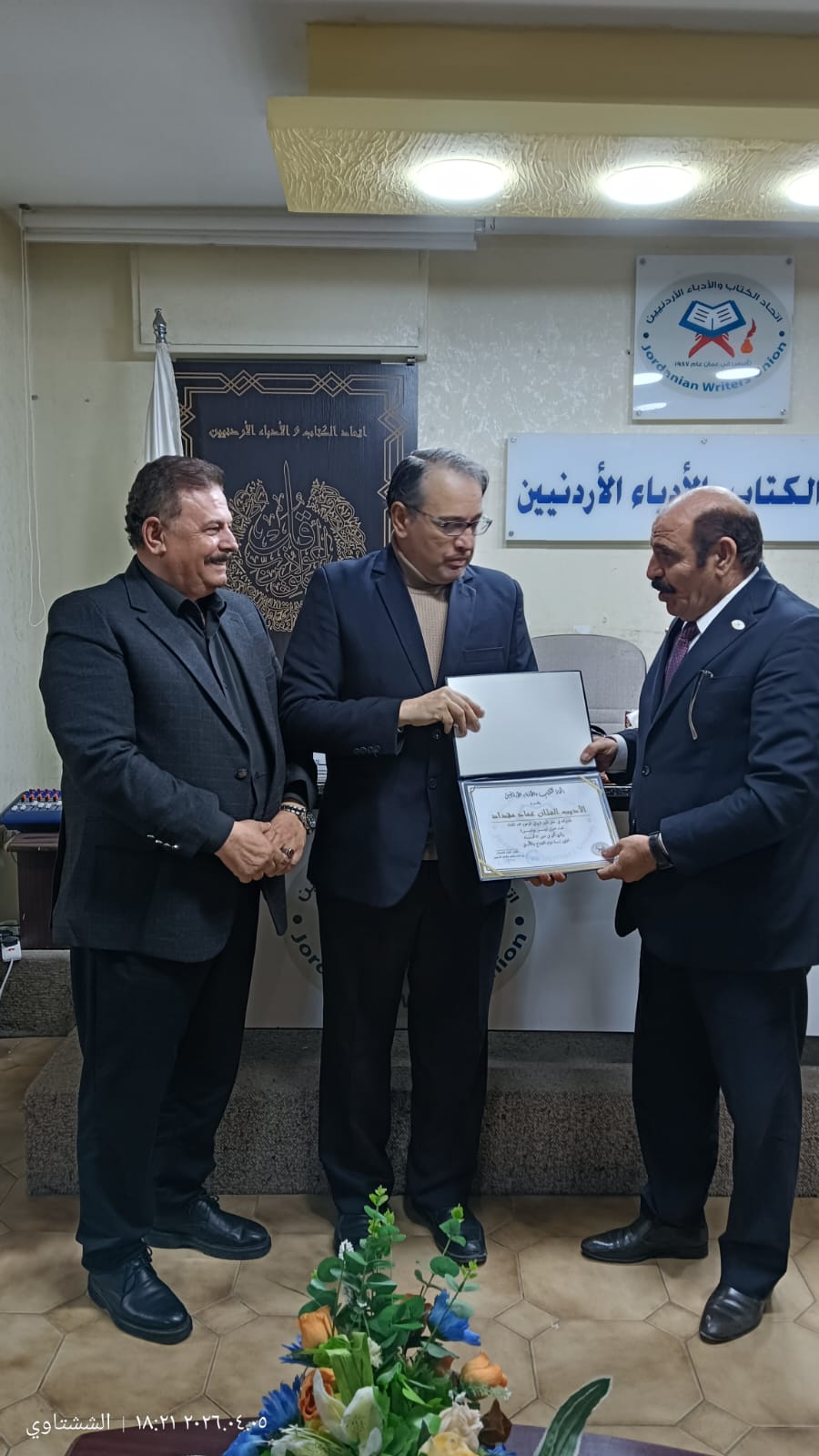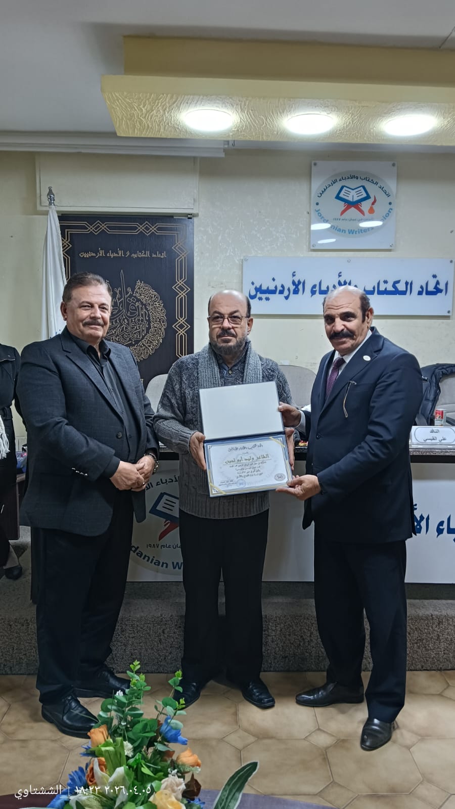 وفي ختام الامسية، قام رئيس الاتحاد بتكريم المشاركين، تقديرا لجهودهم ومشاركتهم في احياء ذكرى الفقيد، مؤكدا اهمية الوفاء لرموز الادب والثقافة الذين اثروا الحياة الثقافية بابداعاتهم.
