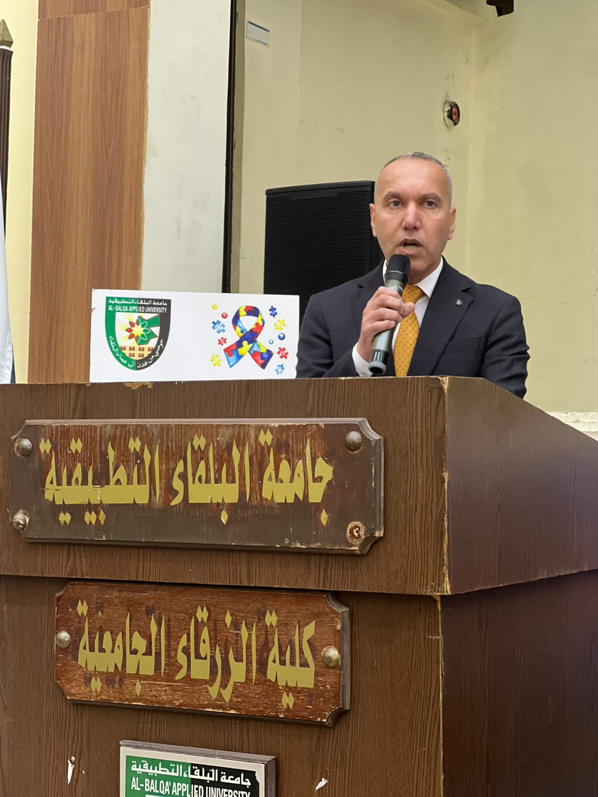 برعاية الأستاذ الدكتور زيد سليمان العدوان، عميد كلية الزرقاء الجامعية في جامعة البلقاء التطبيقية، نظّمت الكلية يومًا علميًا بعنوان "التوحد: نحو وعي شامل وتمكين حقيقي”، وذلك بمناسبة شهر التوعية باضطراب طيف التوحد، بهدف تعزيز الوعي المجتمعي ودعم الأطفال من ذوي اضطراب طيف التوحد وأسرهم.