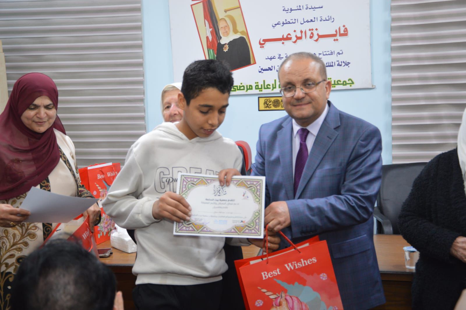 رعى معالي الأستاذ الدكتور محمد طالب عبيدات وزير الأشغال العامة والإسكان الأسبق حفل تكريم الأطفال المرضى بالسرطان وأمهاتهم واللجنة العليا للجمعية وسيدات من المجتمع المحلي ورئيسات جمعيات،