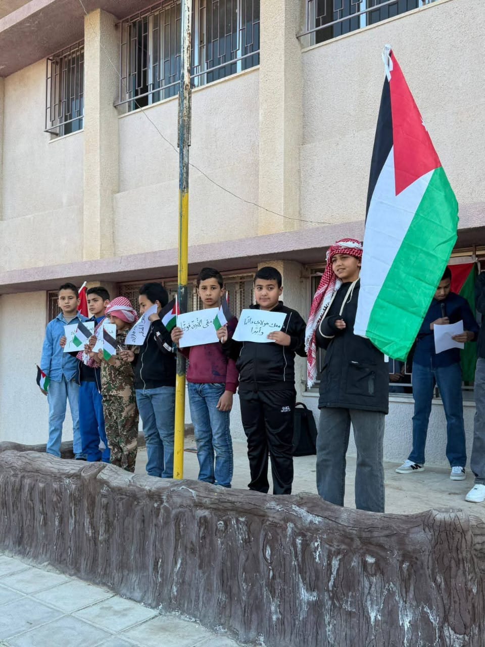 الوقفة الوطنية التي نظمتها المدرسة بالتنسيق مع قسم الإعلام ، بمشاركة رئيس مجلس التطوير التربوي لشبكة مدارس العدسية ، والكادر الإداري والتدريسي وجمع من الطلبة، وذلك ضمن سلسلة الأنشطة التي تهدف إلى تعزيز القيم الوطنية في نفوس الطلبة .