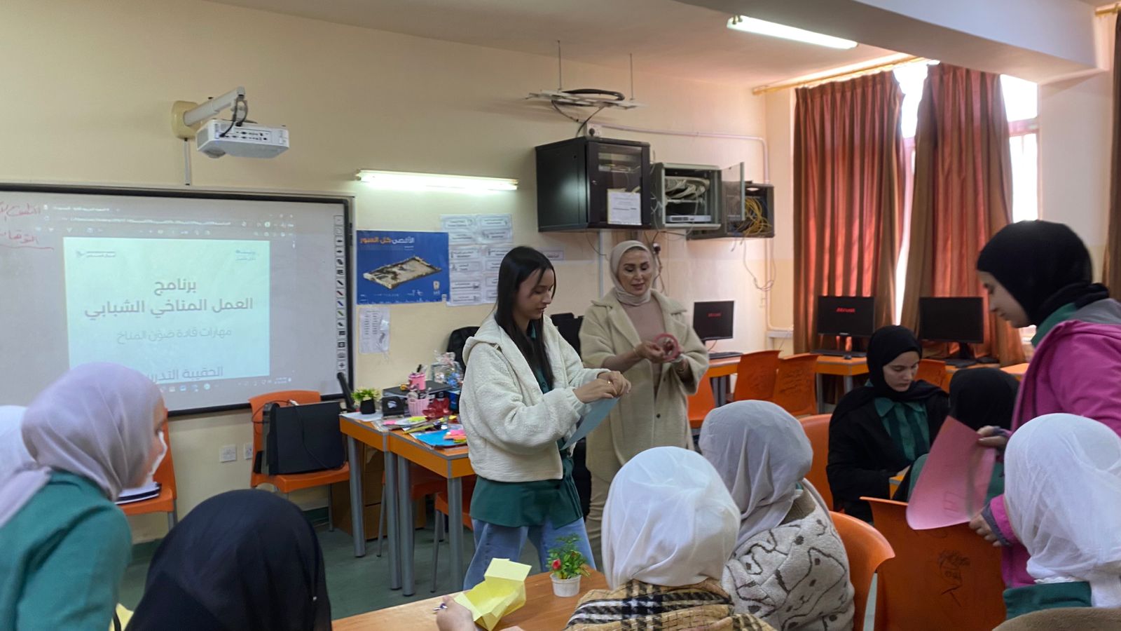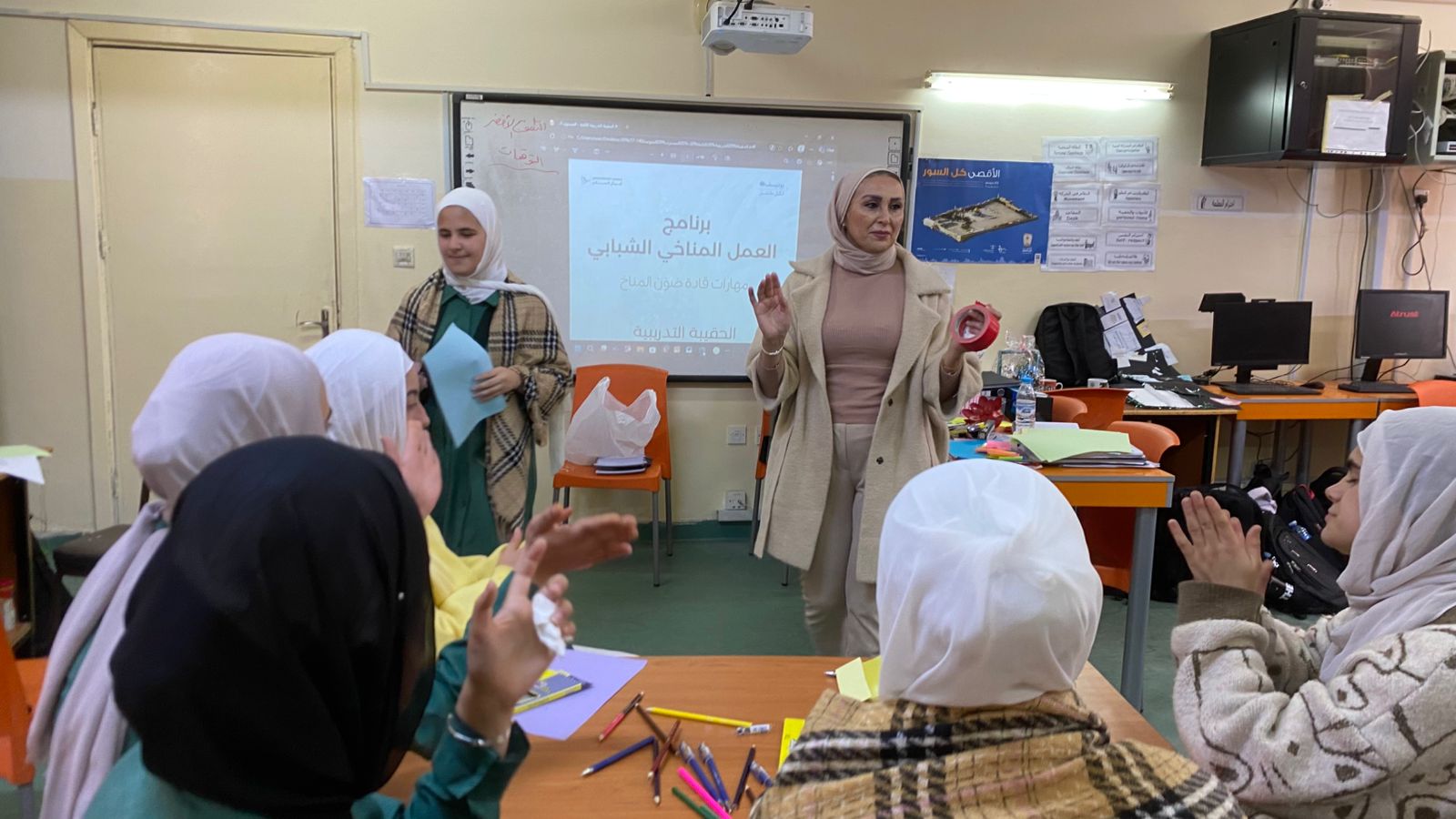وأشارت المدربة ليما العتوم إلى أن البرنامج التدريبي، الذي يستمر على مدار 3 أيام، يتضمن تعريف المشاركات بمفهوم المناخ والطقس والتغير المناخي، وآثاره على الأفراد والمجتمع والنظام البيئي، والمفاهيم المرتبطة به كالاحتباس الحراري والعدالة المناخية وإعادة التدوير والمواطنة البيئية، والمناخ والنوع الاجتماعي، إضافة إلى التعريف بالسلوكيات السلبية التي تسهم في تغير المناخ، وتطوير سلوكيات إيجابية فردية للتقليل من آثاره، وإطلاق مبادرات في نهاية البرنامج.