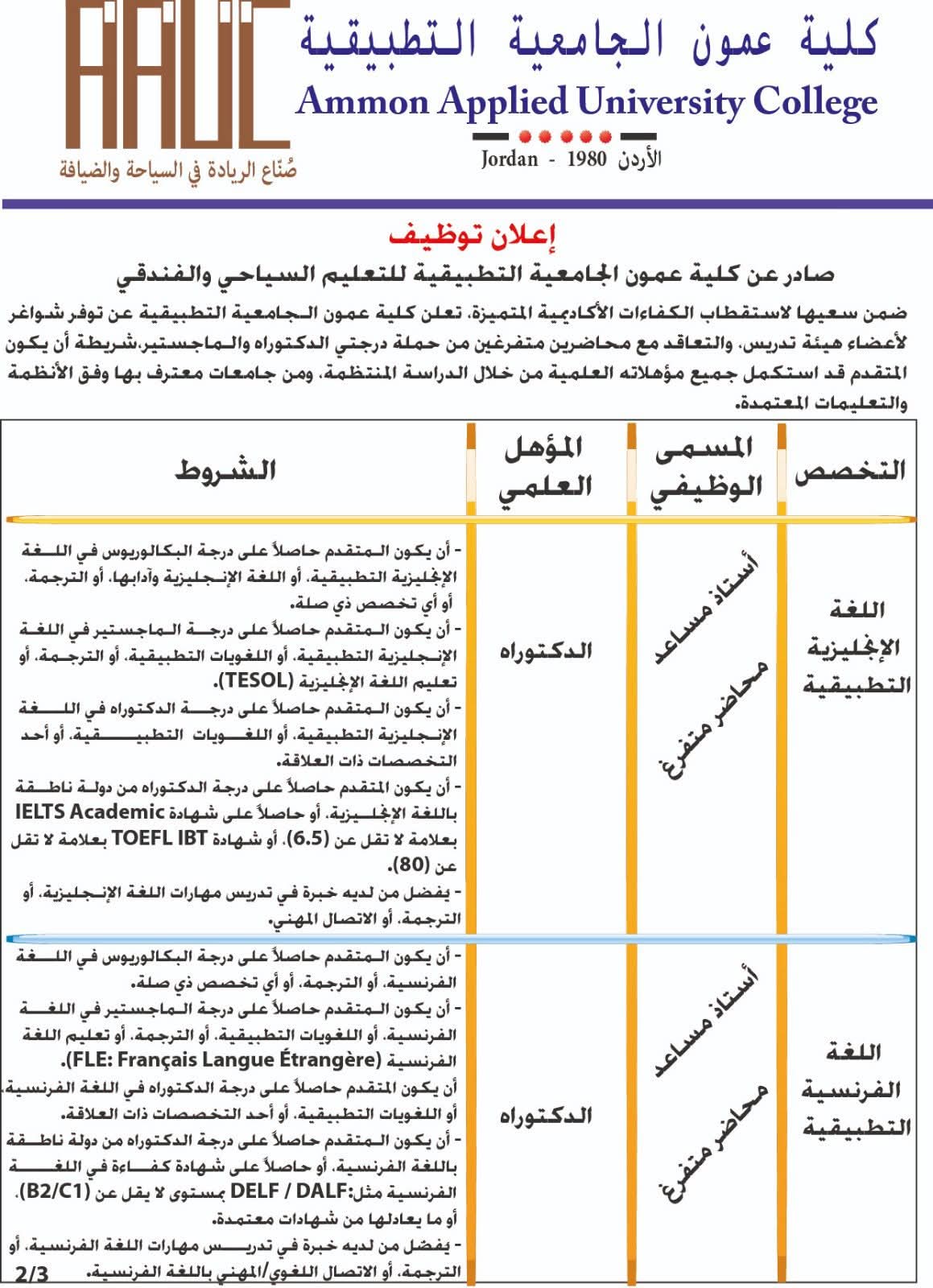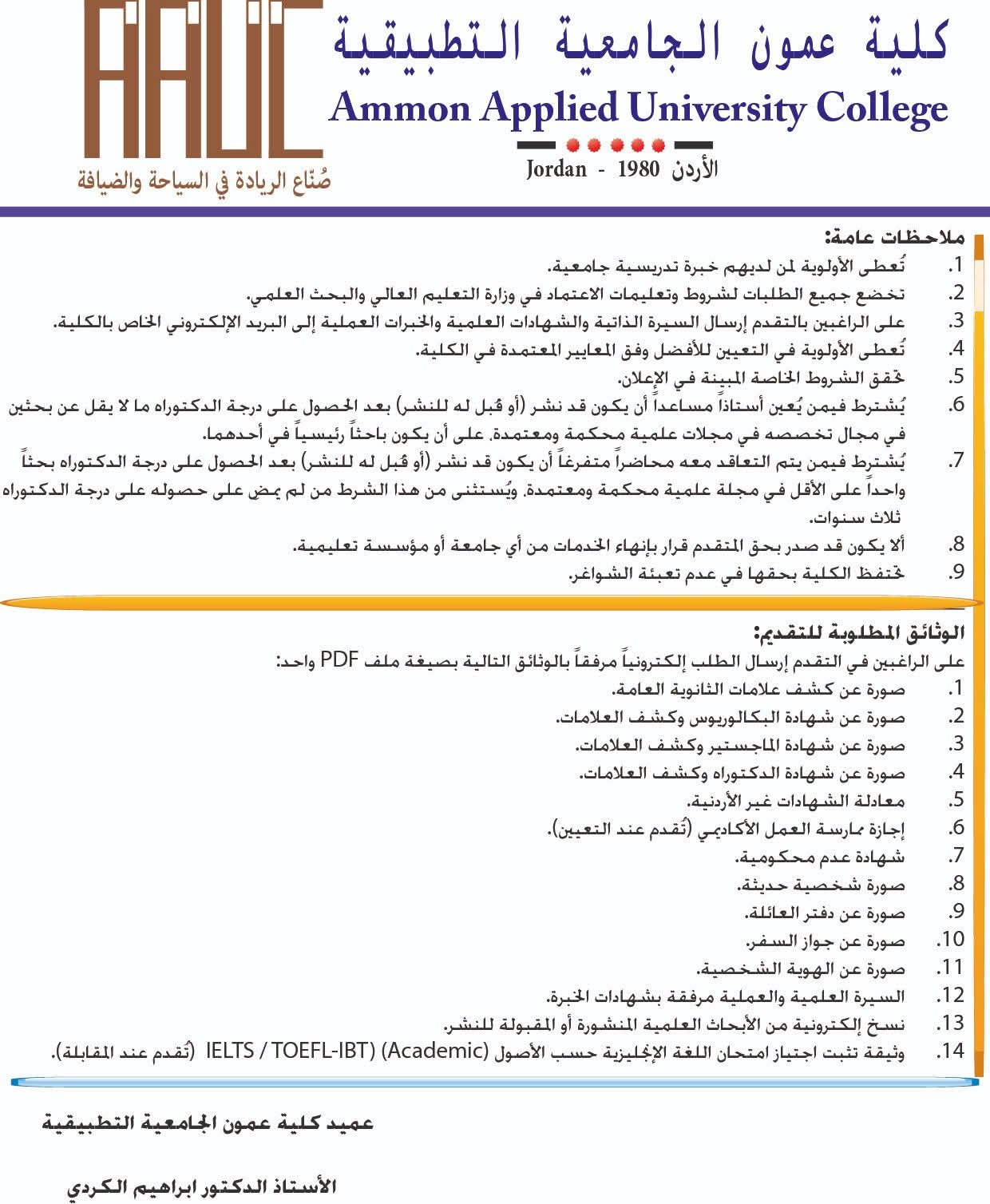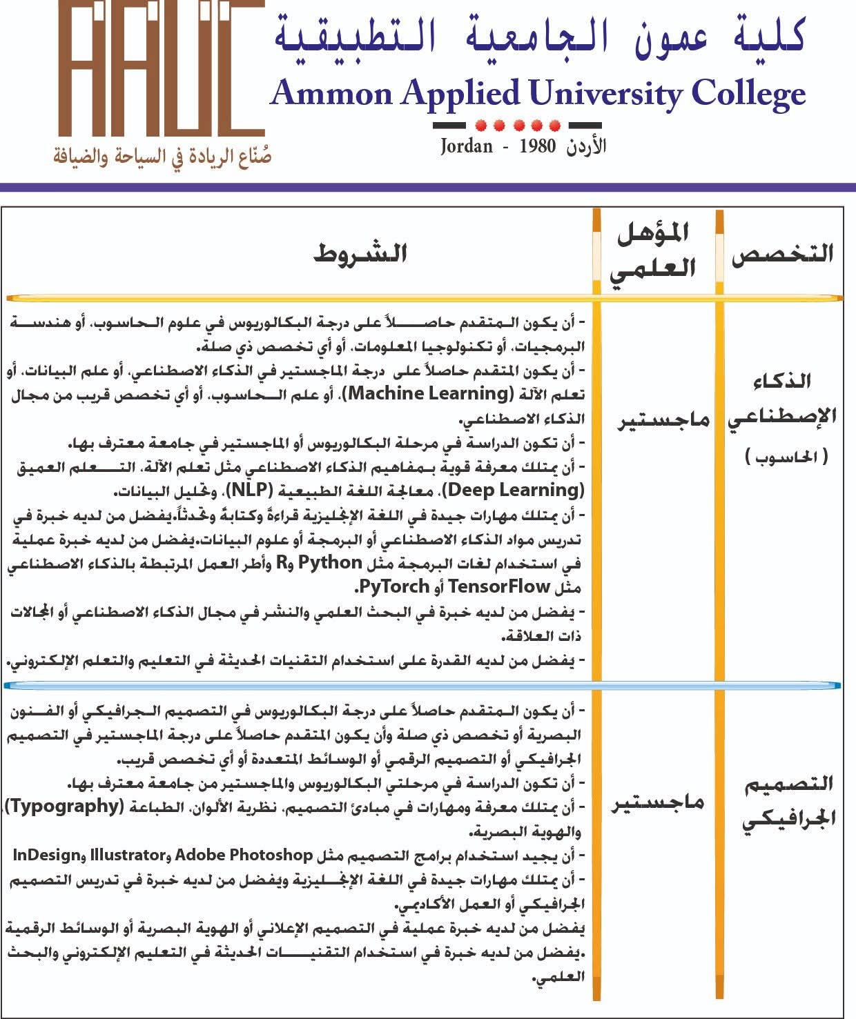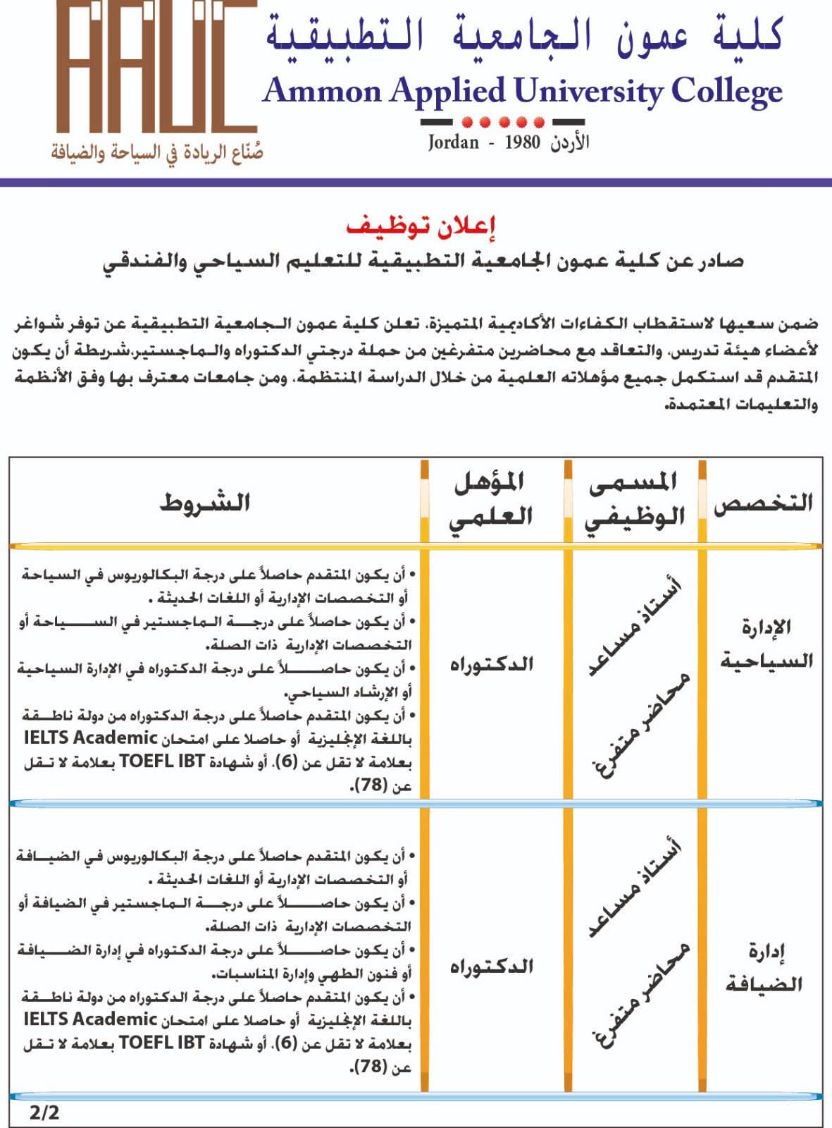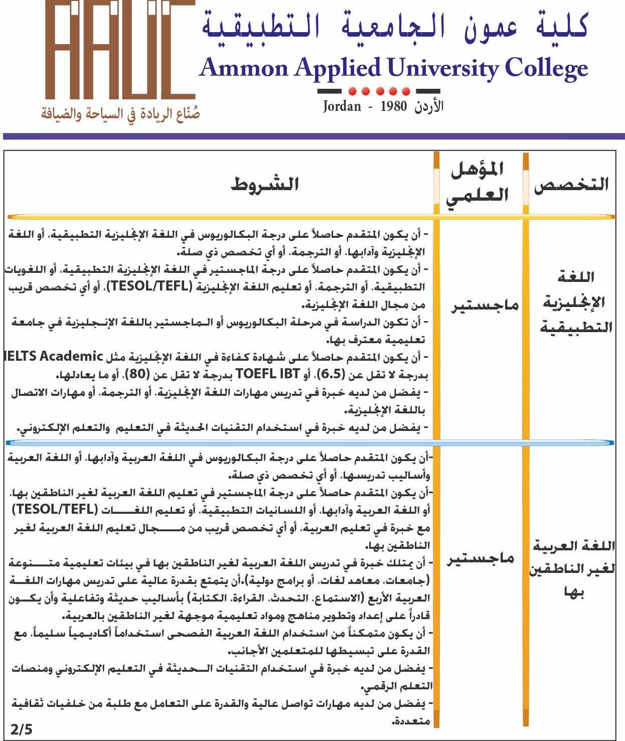 وظائف شاغرة في كلية عمون التطبيقية