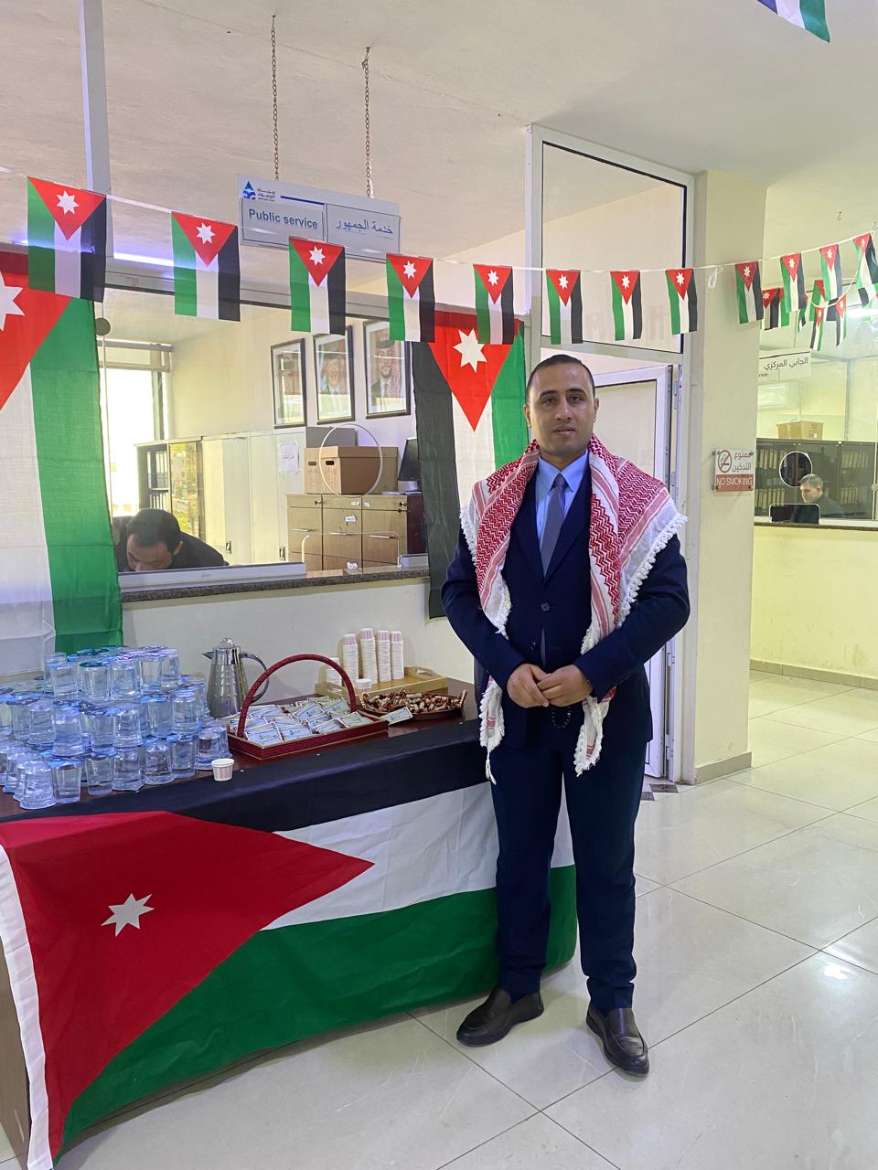 وجاءت هذه المناسبة من خلال استقبال المواطنين المراجعين في مديرية خدمات الزبائن بالقهوة السادة والحلوى، على أنغام الأغاني الوطنية التي عبّرت عن الاعتزاز بالهوية الأردنية، في مشهد جسّد معاني الولاء والانتماء، وأبرز مكانة العلم الأردني كرمز للسيادة والوحدة الوطنية، حيث كان في استقبال المواطنين مدير ادارة مياه جرش المهندس مروان العياصرة، ومدير خدمات الزبائن علي الرواشدة.