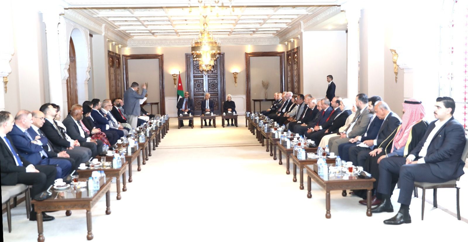 ونقل العيسوي، في بداية اللقاء، تحيات جلالة الملك عبدالله الثاني، وسمو الأمير الحسين بن عبدالله الثاني، ولي العهد، إلى الوفد، الذي يجسد نخبة وطنية وازنة تضم شخصيات تمثل مختلف محافظات المملكة والقطاعات، مؤكداً أن هذا الحضور يعكس عمق التماسك الوطني وتكامل الأدوار في خدمة الأردن، ويعبّر عن صورة حية لوحدة الصف والوعي الوطني الراسخ.