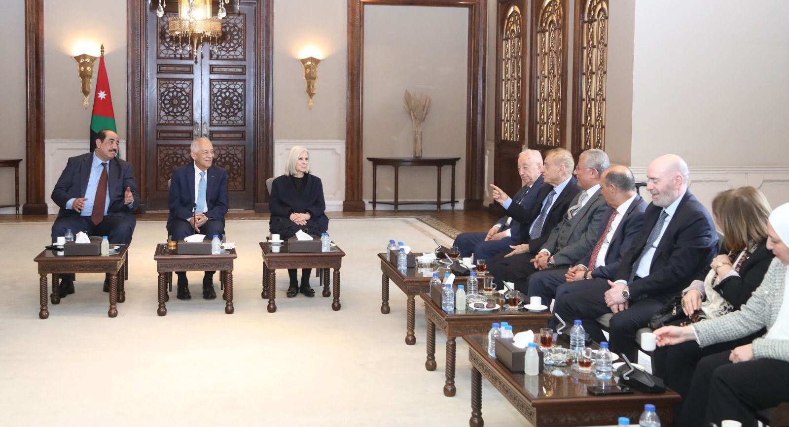 عمّان  : قدّم رئيس الديوان الملكي الهاشمي يوسف حسن العيسوي قراءة وطنية معمّقة في دلالات العلم الأردني، خلال لقائه اليوم الجمعة في الديوان الملكي الهاشمي، وفداً من مبادرة "أردن الرسالة"، مؤكداً أن هذه المناسبة تتجاوز بعدها الاحتفالي لتجسّد معنى الانتماء وترسّخ في الوجدان الجمعي قيم العزة والفخر التي يحملها العلم وهو يرفرف في سماء الوطن.