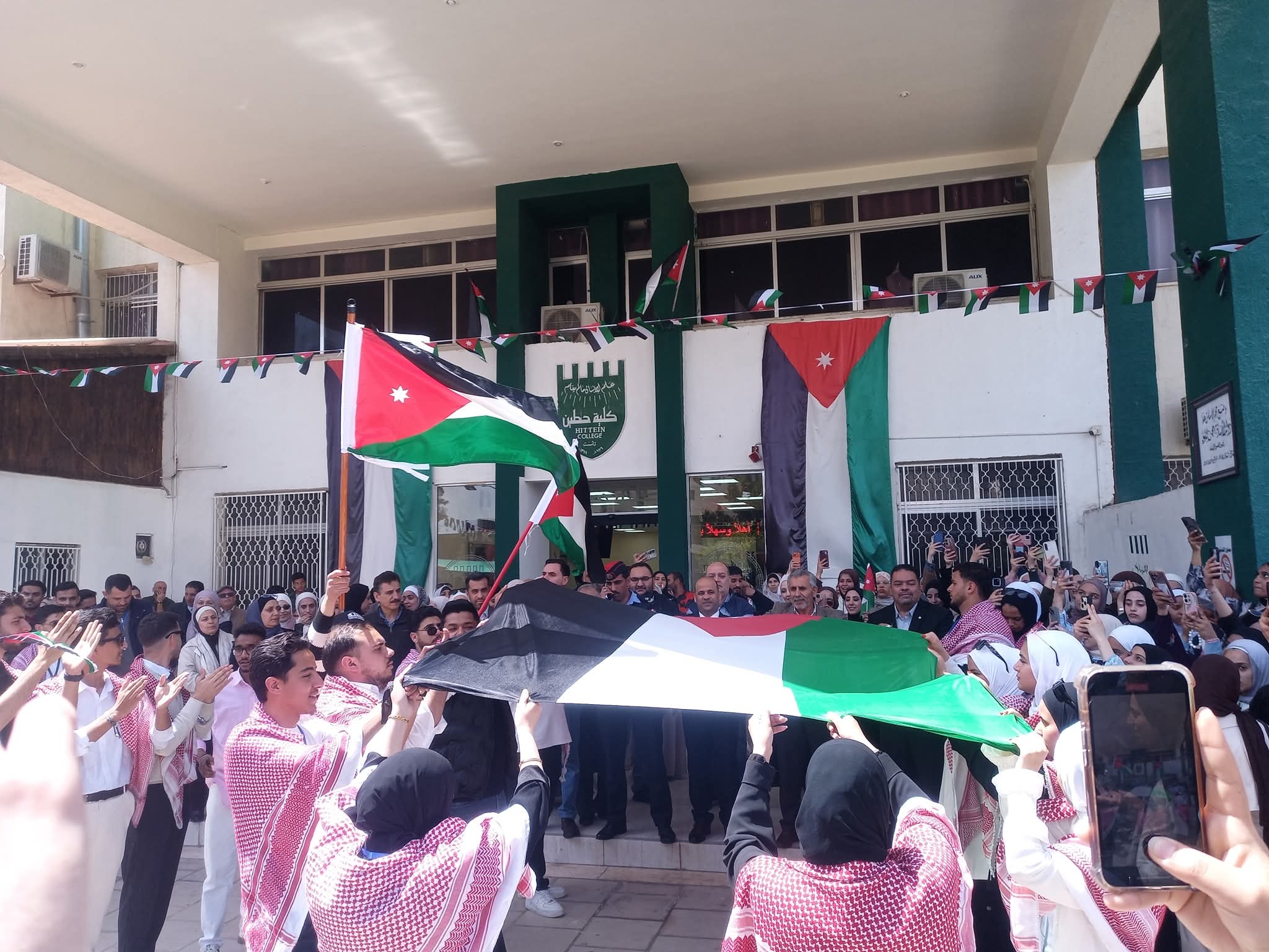 وشهدت الفعالية رفع العلم الأردني في ساحات الكلية وسط أجواء وطنية مميزة، عبّر خلالها الطلبة عن فخرهم واعتزازهم بقيادتنا الهاشمية، مرددين الأهازيج الوطنية التي جسّدت روح الانتماء .