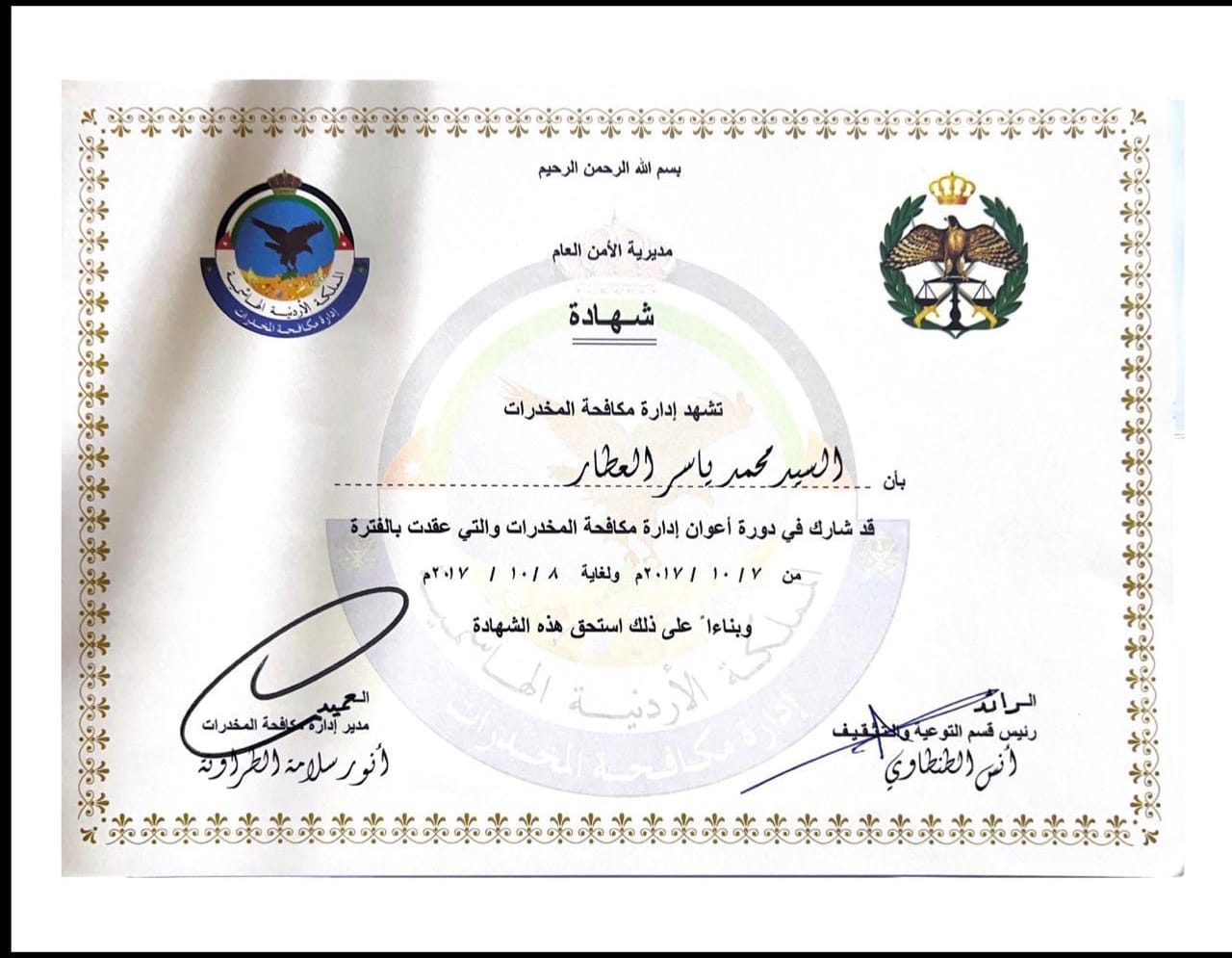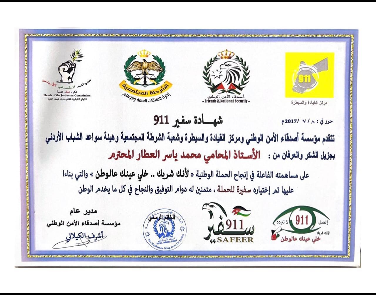 تعكس مسيرة المحامي محمد العطار قيم الانتماء والولاء للوطن، في ظل القيادة الهاشمية ممثلةً بـ الملك عبد الله الثاني بن الحسين وسمو ولي العهد الأمير الحسين بن عبد الله الثاني، مؤكدًا أن خدمة الوطن تبقى الهدف الأسمى لكل جهد مهني وإنساني.