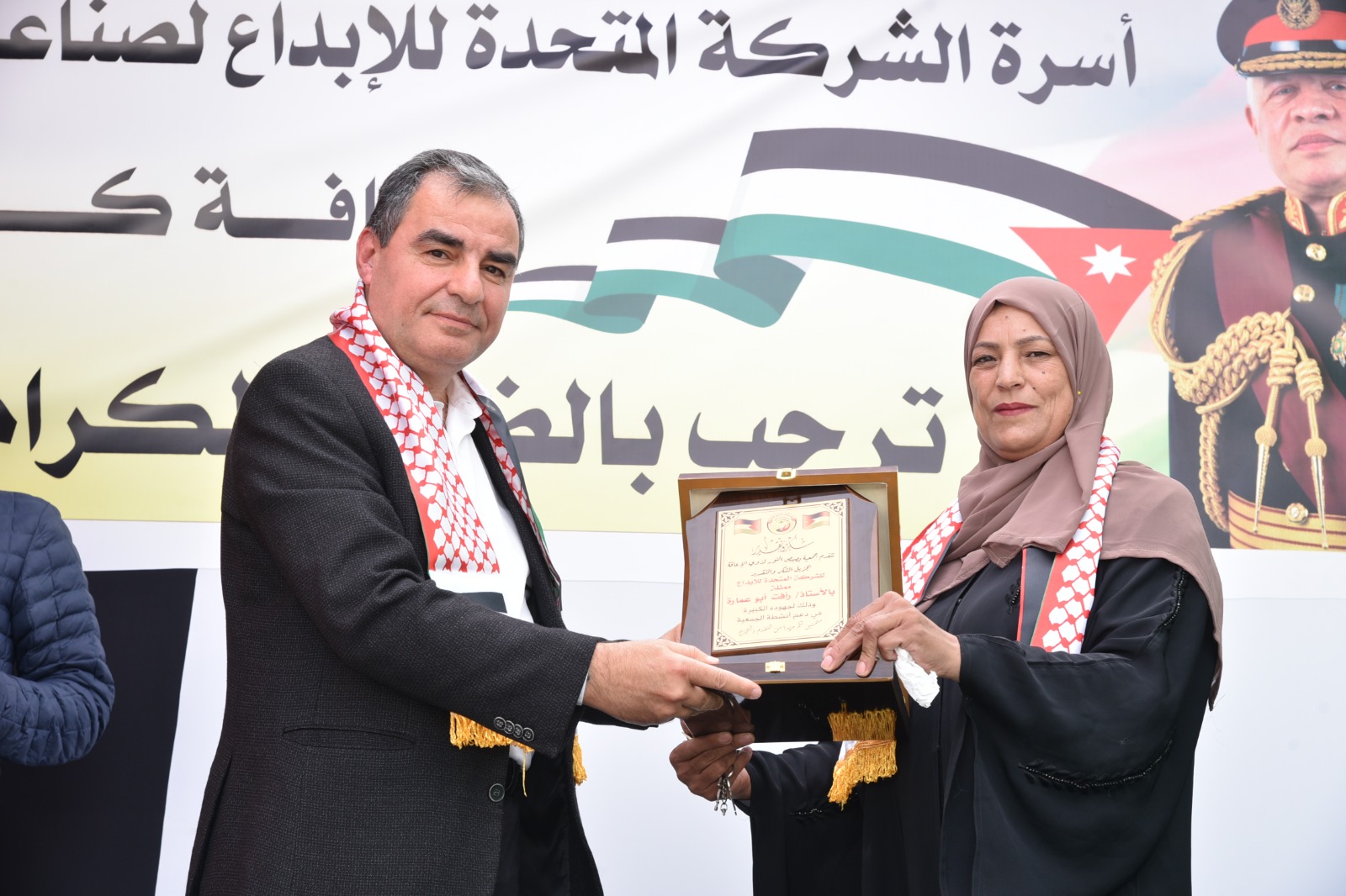 من جانبه اشار السيد محمد الروابدة في كلمته التي القاها نيابة عن أدارة الشركة المتحدة للإبداع الى رمزية العلم الاردني عبر تاريخ الدولة وما يمثله من معاني الفخر والاعتزاز وراية للحرية والكرامة ،  ونوه الروابدة الى ما يرمز له العلم من انتماء للأرض وتعبير عن الهوية والوحدة الوطنية وفي الوقت ذاته تعبير عن التزام اصيل وثابت بالعمل على صونها وحمايتها وتجديد العهد على الدوام بالالتزام بمبادئ الدولة واهدافها ، وفي نهاية الحفل الذي تضمن وفعاليات قدمتها اكاديمية ومدرسة زدني علما  وفلكلورية قدمتها فرقة الدبكة الشعبية وقصائد شعرية القاها الشاعر عبدالرحمن يوسف من الجامعة الهاشمية تبرز المعاني النبيلة للعلم الاردني كرمز وطني يلتف حوله الاردنيون ويفدونه بالمهج والارواح قام راعي الحفل مساعد محافظ الزرقاء مع مدير الشركة المتحدة للأبداع بتكريم الجهات المشاركة بالحفل والفاعلة بالعمل التنموي والاجتماعي في قضاء الضليل فيما قامت جمعية بصيص النور بتكريم الشركة المتحدة للأبداع لدعمها المتواصل لجهود الجمعية في العمل التطوعي المجتمعي.