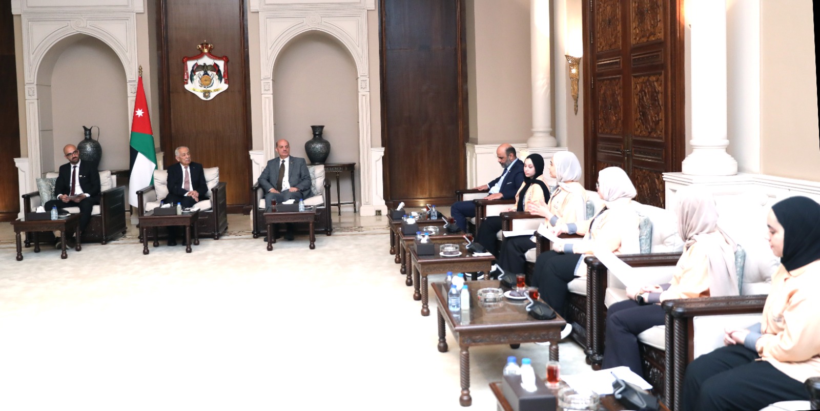 *عمان – : استقبل رئيس الديوان الملكي الهاشمي يوسف حسن العيسوي، اليوم الاثنين، وفداً طلابياً  من مدارس السرمد، يمثل مبادرة الميثاق الوطني، ووفداً من ابناء لواء ناعور، في لقاءين منفصلين.