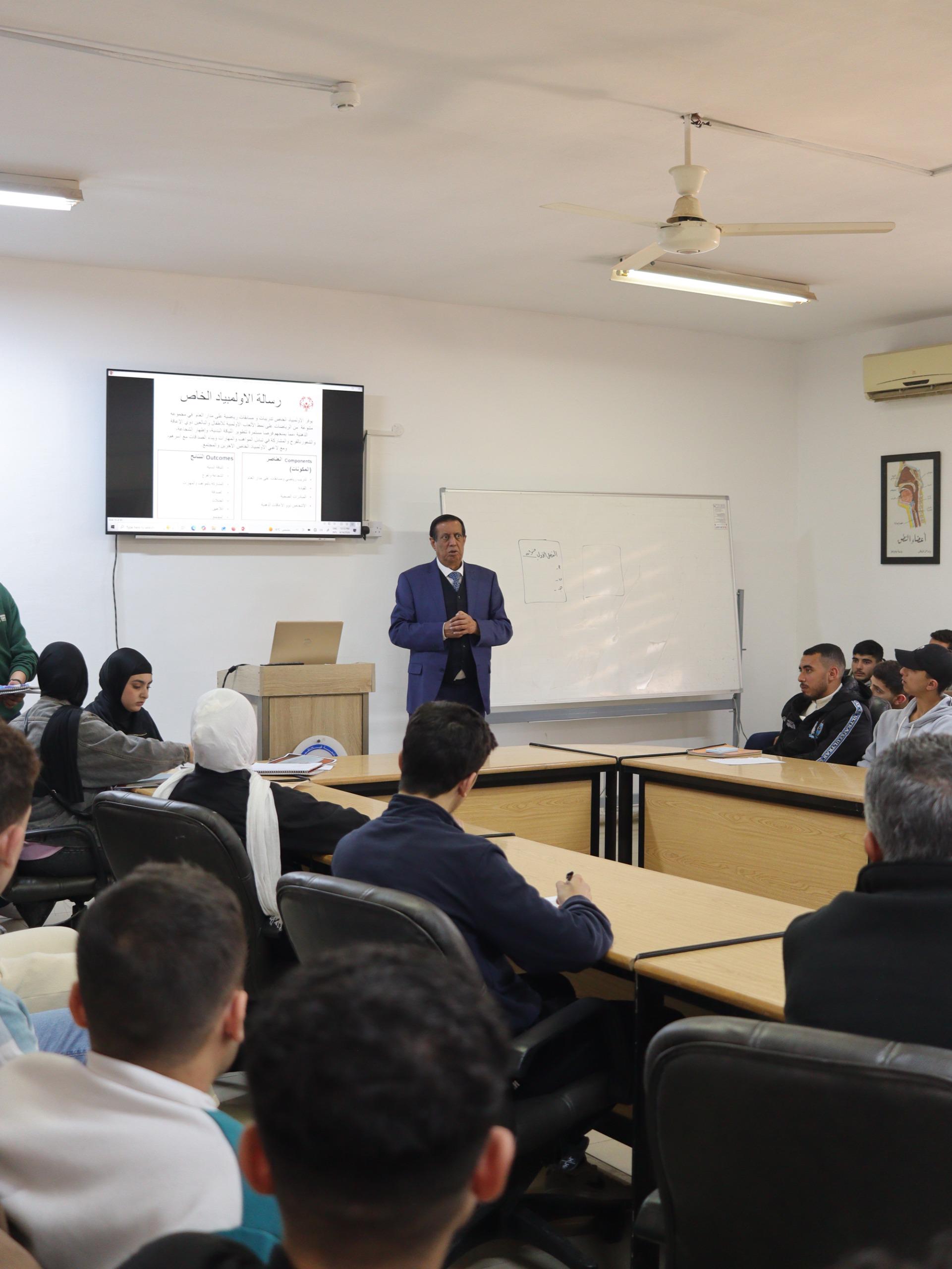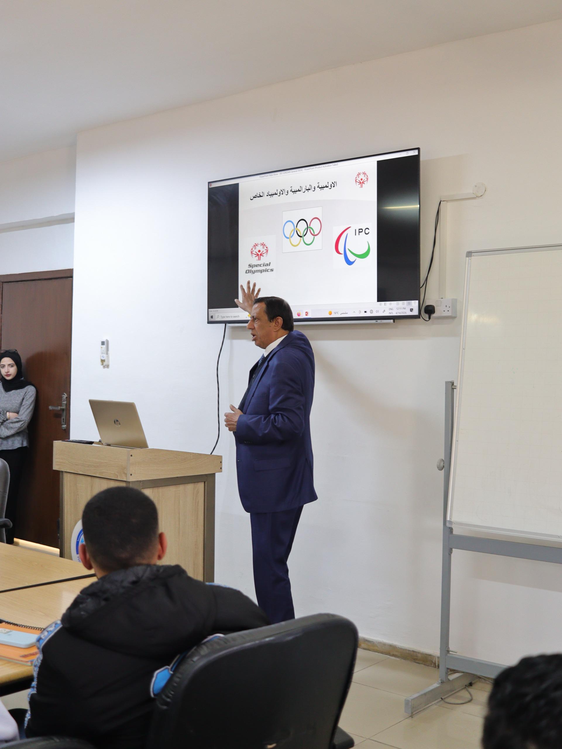 نظّم قسم التربية الرياضية في كلية الآداب والعلوم التربوية ندوة بعنوان: (الأولمبياد الخاص وذوو الإعاقة الذهنية)، قدّمها مدير الأولمبياد الخاص الدكتور علي الشواهين، بمشاركة مديرة برنامج المدارس الدامجة في الأولمبياد الخاص، السيدة فاتن حسونة، بحضور عميد كلية الآداب والعلوم التربوية الأستاذ الدكتور عمر الكفاوين، ورئيس قسم التربية الرياضية الأستاذ الدكتور عبدالباسط الشرمان.